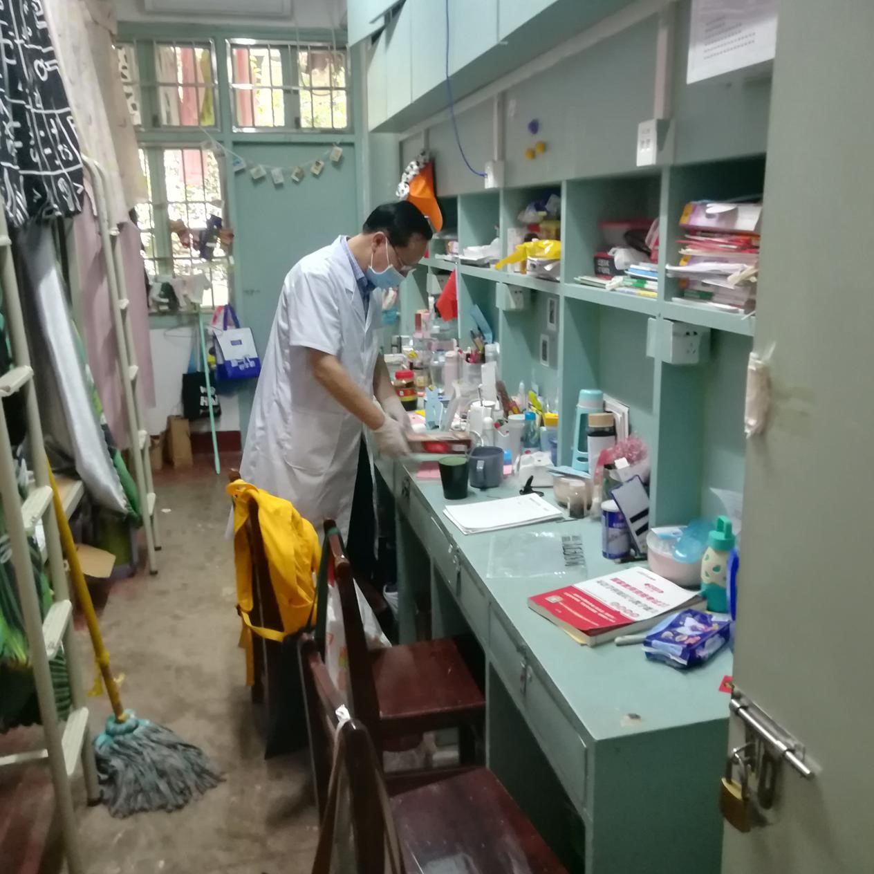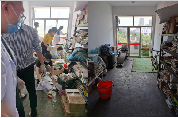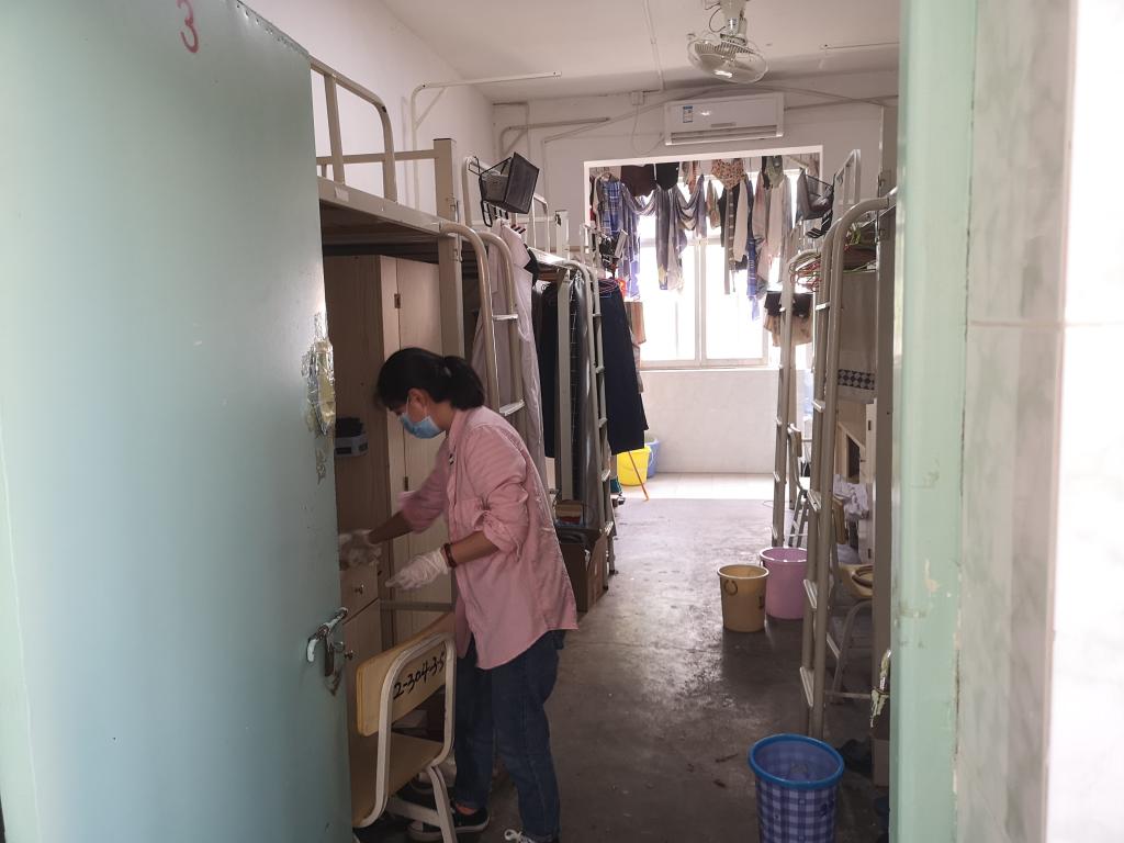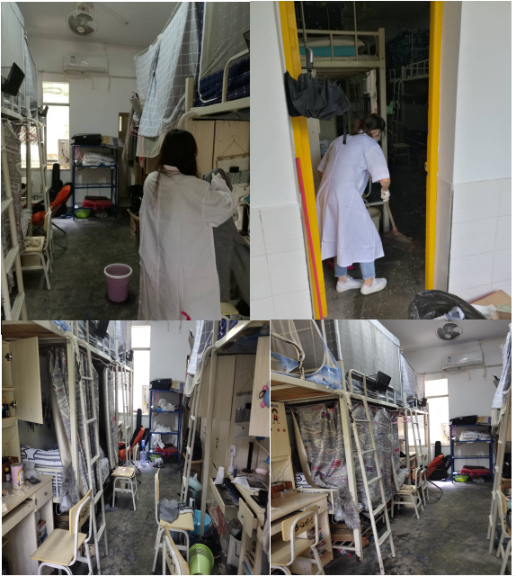 动员结束后,全体党员以支部为单位分赴各自责任的寝室,全面开展卫生清扫工作。在每间宿舍里,党员教师、管理干部和教辅人员并肩作战,整理桌面、清扫地面、擦试窗台、通风消毒,一场热火朝天的“卫生总动员”如火如荼地迅速铺开。经过半天的辛苦劳动,疫情期间长期未使用的寝室焕然一新,窗明几净、舒适整洁的寝室环境让人眼前一亮,卫生清扫工作大功告成。