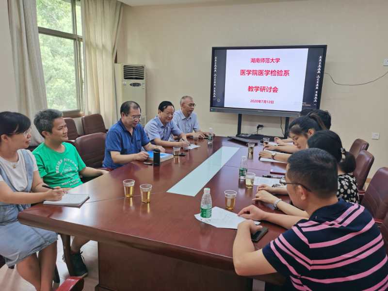 2020年7月12日上午,金沙官网医学检验系于院办公楼三楼会议室召开教学研讨会。本次会议由教学副院长张坚松主持,系主任、各教研室主任及35岁以下青年教师参加。研讨会主要分为两项内容:第一项内容为青年教师张慧慧老师试讲课;第二项内容为刘如石教授就医学技术一级学科硕士学位点建设作出汇报。