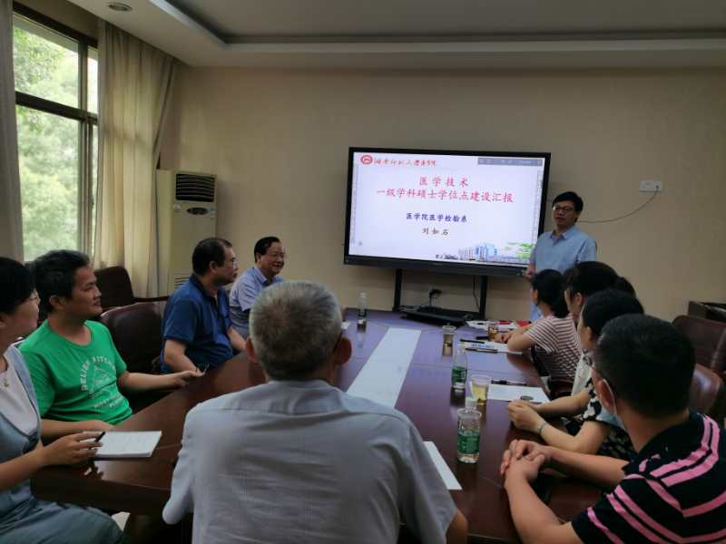 随后,刘如石教授就医学技术一级学科硕士学位点申报工作进行汇报。张坚松充分肯定了医学检验系近几年来在学位点和学科建设方面的工作成效,希望系里逐一对照硕士点建设标准,查漏补缺,进一步整理好申报的材料。