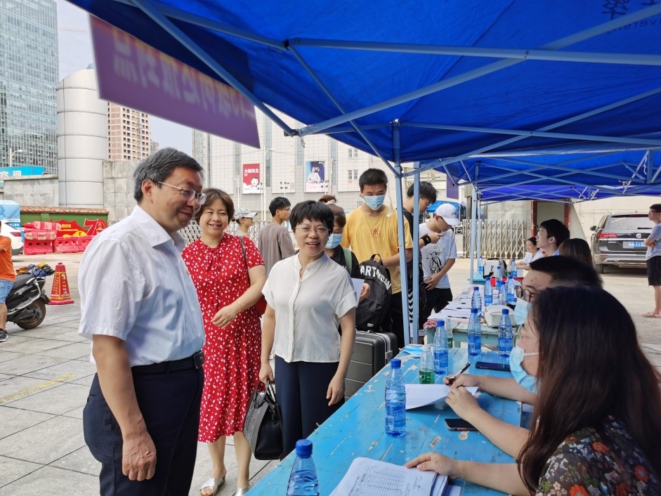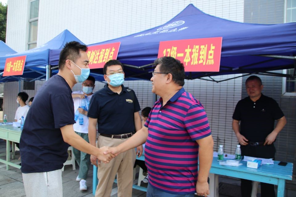 副校长匡乐满来到学院视察开学报到工作,他向工作人员仔细询问学生复学报到情况,与学生和家长亲切交谈,并先后到食堂、宿舍等实地考察,对学院准备充分的报到工作表示赞许。院党委书记鄢朝晖、党委副书记陈松及学工办一行人陪同视察。