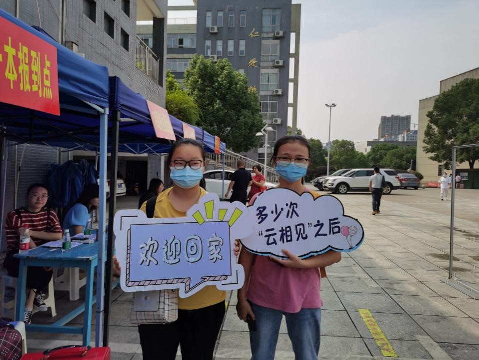 清晨,学院全体行政老师就早早来到校门口报道处迎接学生们归来。同学们佩戴口罩,根据标识牌,在工作人员的引领下,持“湖南省电子健康码”或所在地绿码有序进入校园。按照间隔线,保持安全距离,经过开学报道专用通道,通过行李消杀、体温检测、流行病调查、查验健康码、上交健康卡及相关材料等手续完成入校登记等开学报到程序,进入校园。随着同学们的陆续到校,师生之间亲切问候,交流居家学习状态与健康状况,丝毫没有许久未见的疏离。青志协自发组织学生志愿者,为开学报道的同学提供贴心报道引导、行李搬运等服务。