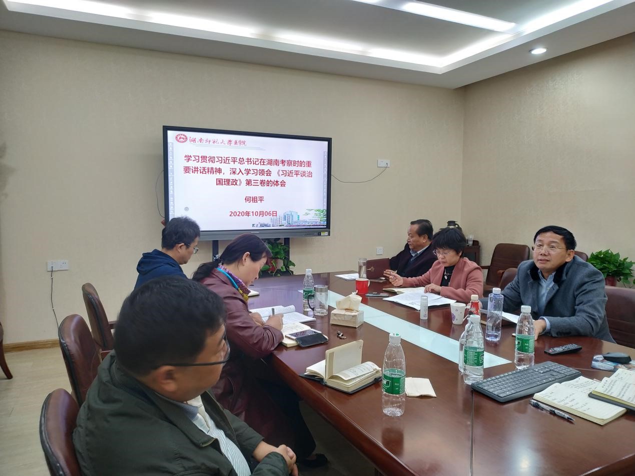 何祖平以《学习习近平总书记在湖南考察重要讲话精神》为题进行了发言。他强调,我们要做好金沙官网的“十四五”规划,做好调研,集思广益,做好顶层设计,促进人才培养、科学研究、学科与平台建设。