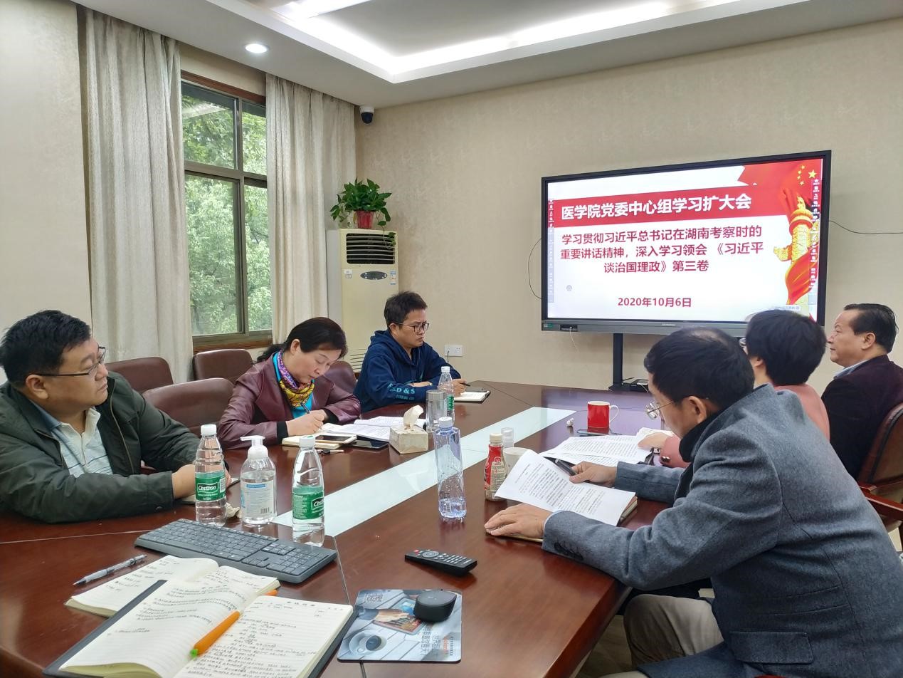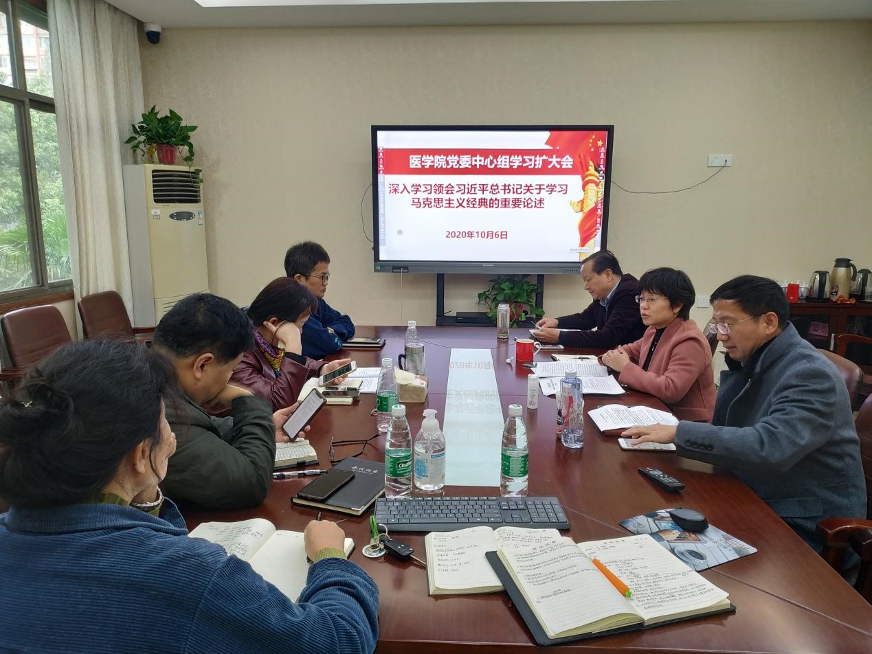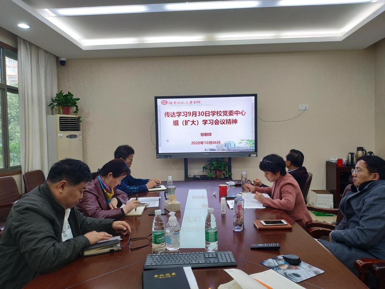 2020年10月6日上午,金沙官网在办公楼三楼会议室召开本学期第三次中心组学习(扩大)会,党委中心组全体成员和院长助理及党委办、行政办主任参加了中心组学习。院党委书记鄢朝晖主持会议。