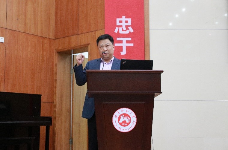 金沙官网党委书记鄢朝晖、树达学院党委副书记曾南雁、金沙官网副院长张坚松、邓文艳、院长助理叶湘漓、各系主任及学工办全体老师参加了开学典礼。