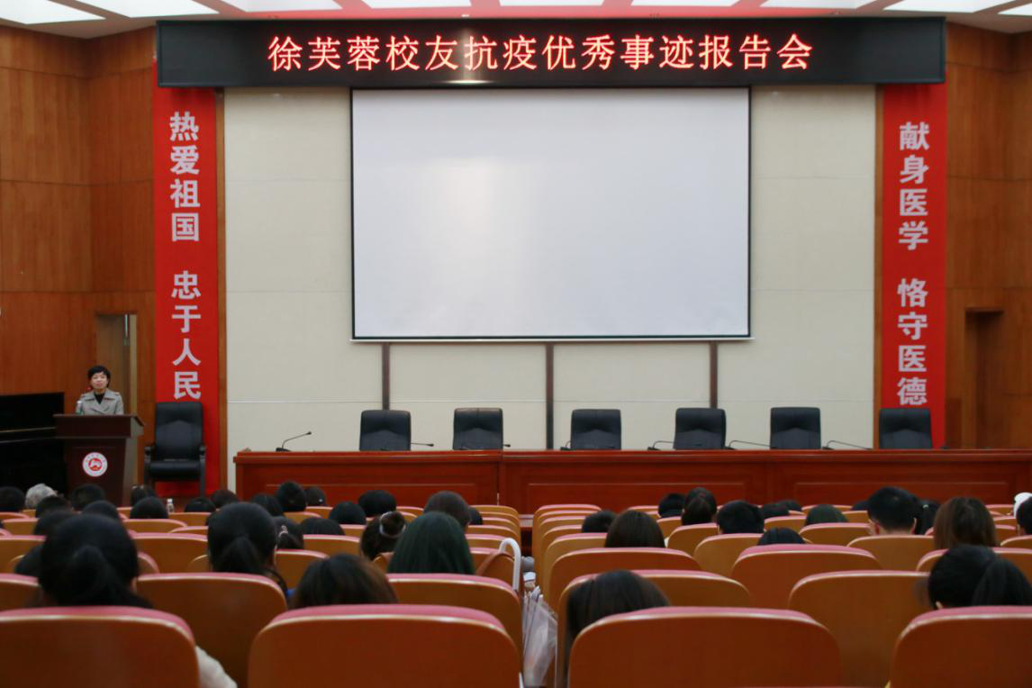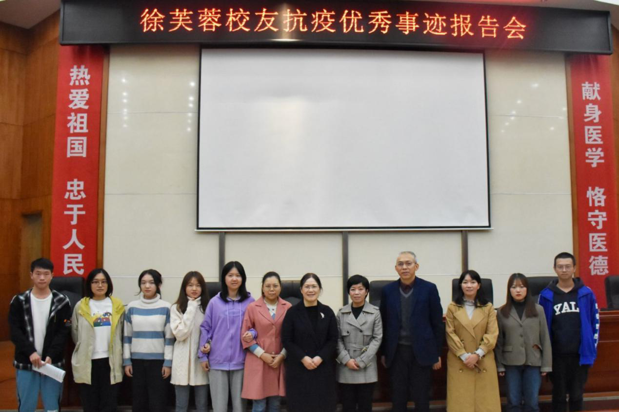 报告会开始前,医学检验系党支部书记袁仕善老师讲述了组织这次报告会的背景、目的和意义,希望同学们继续传承伟大的抗疫精神,努力学习,为祖国卫生健康事业添砖加瓦。王卫红着重介绍了徐芙蓉校友的求学和工作经历。