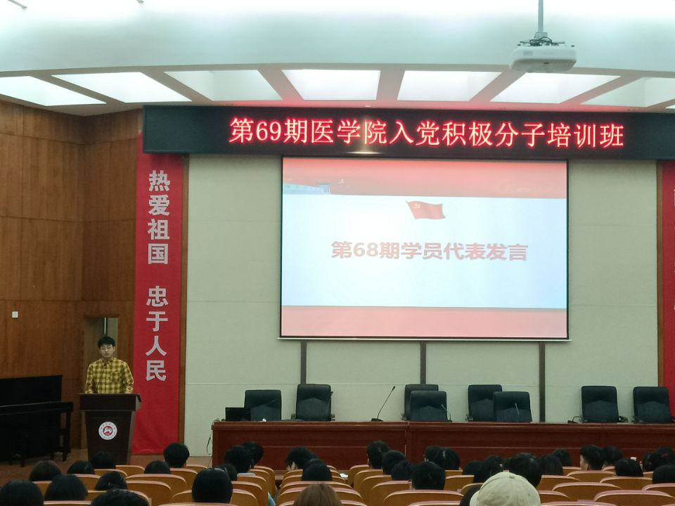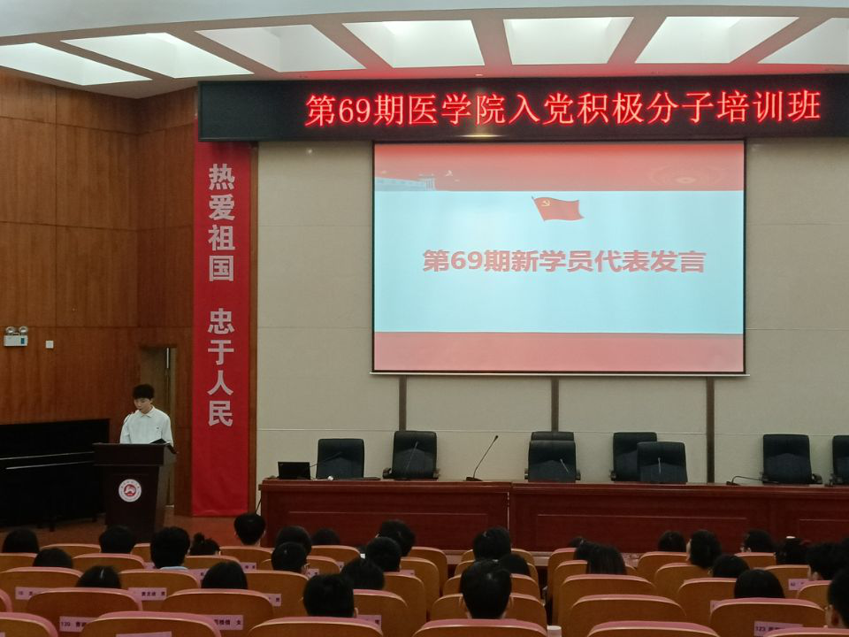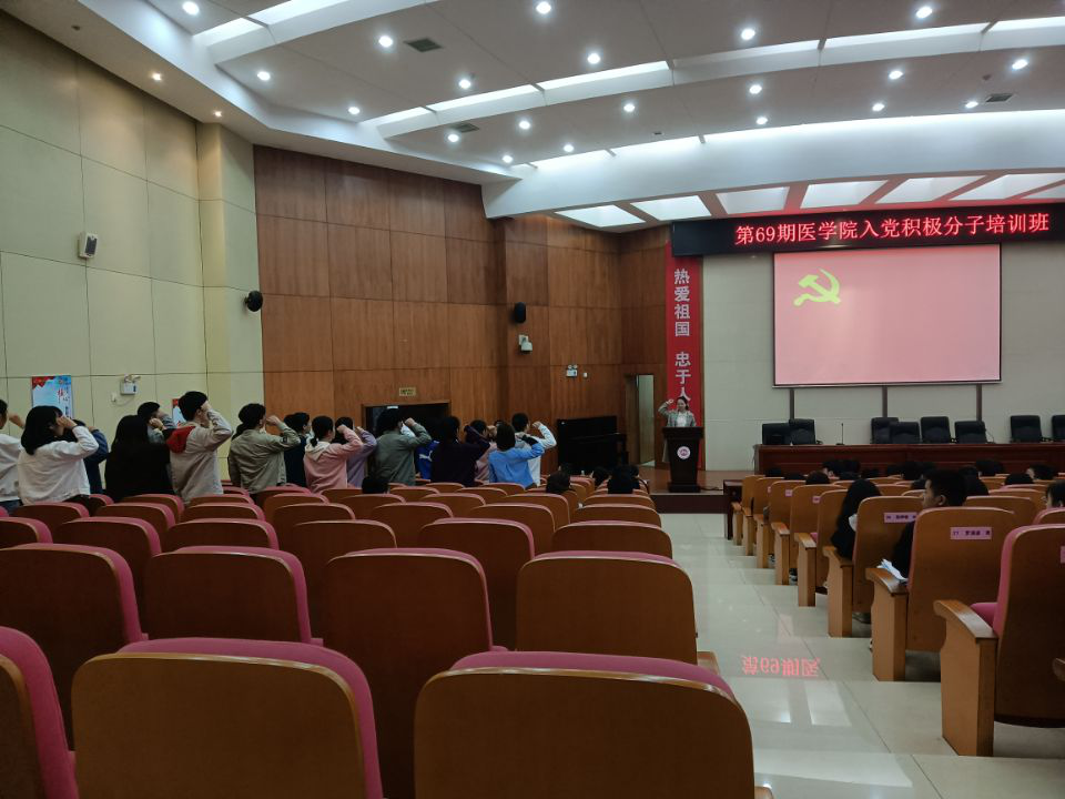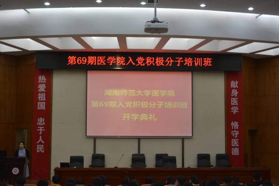 10月24日上午8点,金沙官网于仁医楼学术报告厅举行第69期入党积极分子培训班开班典礼。校党校常务副校长、组织部副部长袁道香、院党委书记鄢朝晖、预防医学系党支部阳益德老师、第69期入党积极分子及预备党员参与此次活动。党委办组织人事秘书吴鹏担任主持人。