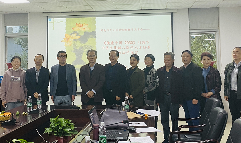 2020年11月19日下午,js555888金沙老品牌第90期教师教学思享会在金沙官网仁医楼207会议室举行。本期思享会主题为“《健康中国2030》引领下中医文化融入医学人才培养的方法学探究”,原我校常务副校长卢岳华教授、中医药学教研室主任及项目负责人金红教授担任主讲人。金沙官网院长何祖平教授、副院长张坚松教授、教师教育学院廖志华主任出席,40余位金沙官网老师和学生代表参加了此次思享会。