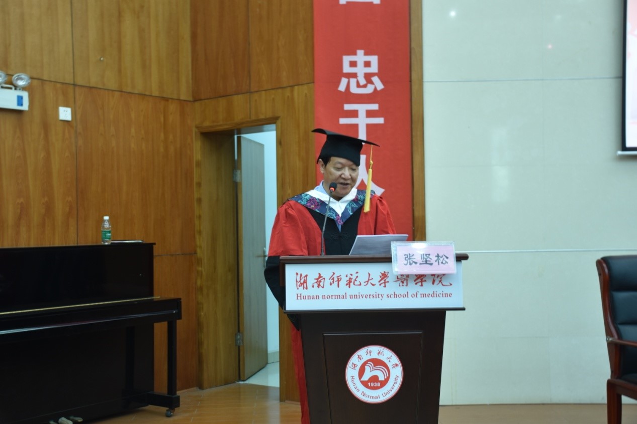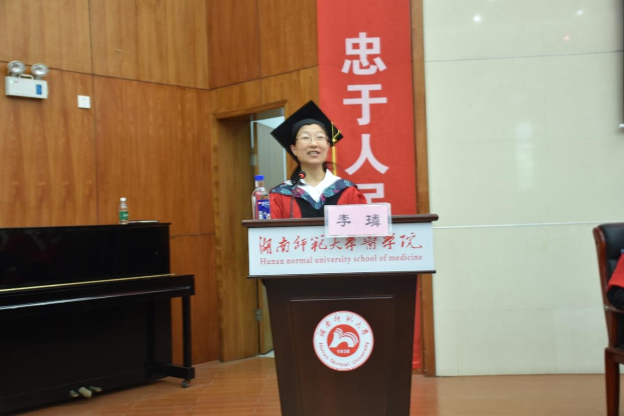 已被中南大学湘雅医院录取的2016级临床医学专业刘湘君作为毕业生代表发言,她感谢学校的培养,并表示将铭记母校恩情,奉献社会、回报母校。