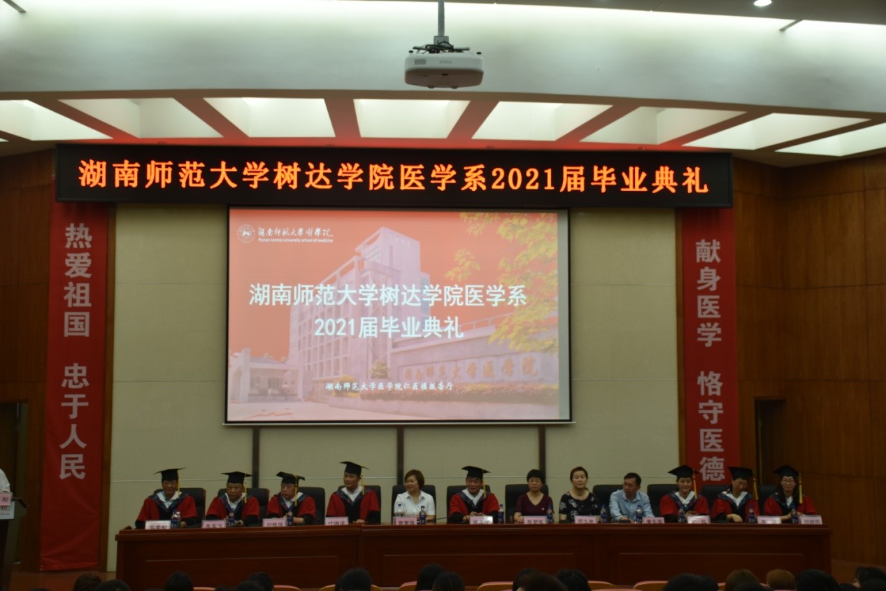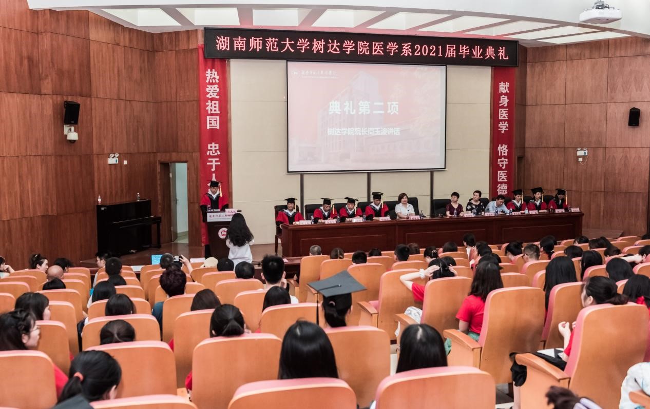 6月17日上午10点,树达学院医学系2021届毕业典礼在仁医楼学术报告厅隆重举行。树达学院院长周玉波、树达学院副院长黄元国、树达学院党委副书记曾南雁,金沙官网党委书记鄢朝晖、金沙官网副院长张坚松、金沙官网副院长邓文艳、金沙官网院长助理叶湘漓、树达学院医学系主任王先酉,导师代表刘铁滨、金红、李玉飞、李璘、刘丽华以及学工办辅导员出席本次毕业典礼。树达学院医学系2021届全体毕业生及部分学生家长参与。党委副书记陈松主持毕业典礼。