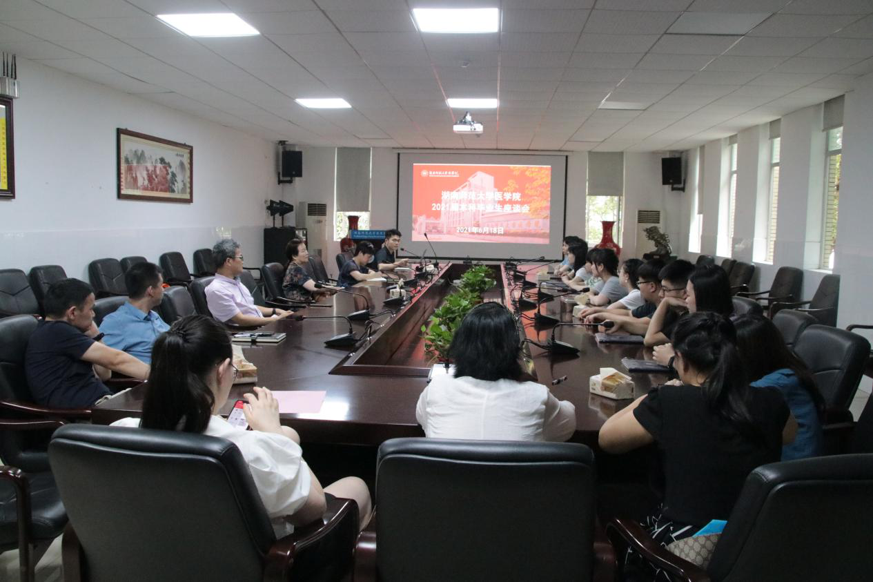 为深化党史学习教育,强化金沙官网“我为群众办实事”工作成效,6月18日下午,金沙官网于仁医楼207会议室召开2021届本科毕业生座谈会。院党委书记鄢朝晖、党委副书记陈松、副院长邓文艳、院长助理叶湘漓及各系(中心)负责人或支部书记出席会议,毕业生代表参加会议,院团委指导老师张明明主持座谈会。