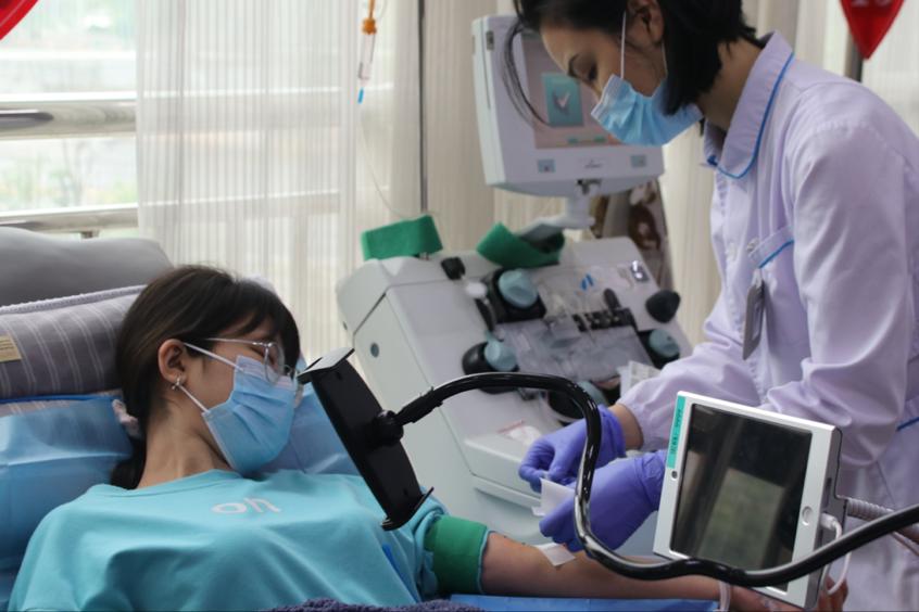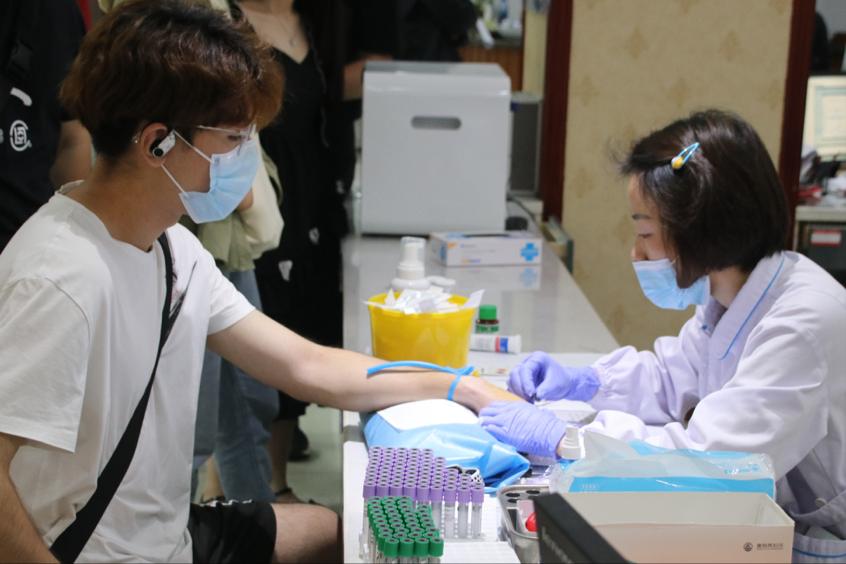 到达采血点后,志愿者们需在公众号上填写个人信息与了解注意事项并签署献血知情同意书。之后由工作人员带领,进行血压测量与血液采样,期间医务人员会提醒大家多喝温水便于之后采血。在等待血检结果的过程中,并带领未吃早餐的志愿者们前往用餐室用餐。休息区准备了糖果、饼干等零食为大家补充能量。采血过程中,血液中心的志愿者会切实关注采血者的感受,满足他们的需求。献血结束后,工作人员对大家前来志愿献血表示感谢并嘱咐大家三天内要注意休息。
