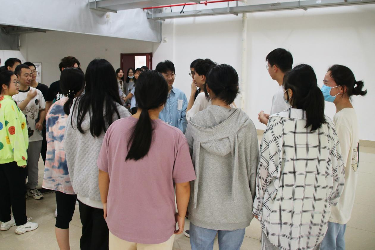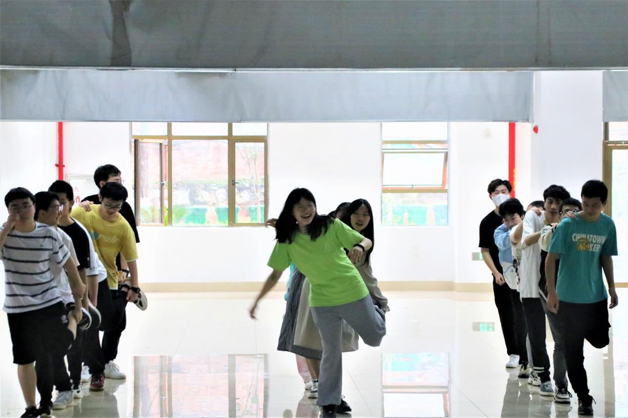 在第一个游戏中,同学们每四人分为一组,背对背围成一个圈,相互挽着手不撑地站起来,活跃了现场的活动气氛。在接下来“五毛一块”“我有你没有”的游戏中,同学们进一步增加了对彼此的认识,拉进了彼此的距离。最后一个游戏中,同学们六人一组,单手单脚搭成一列小火车,各小队从起跑线出发,跳步前进,绕过障碍物回到起点,火车进行途中如果断裂,该队需重新开始,最先到达起点的为胜。活动结束后,同学们进行了活动心得的分享。