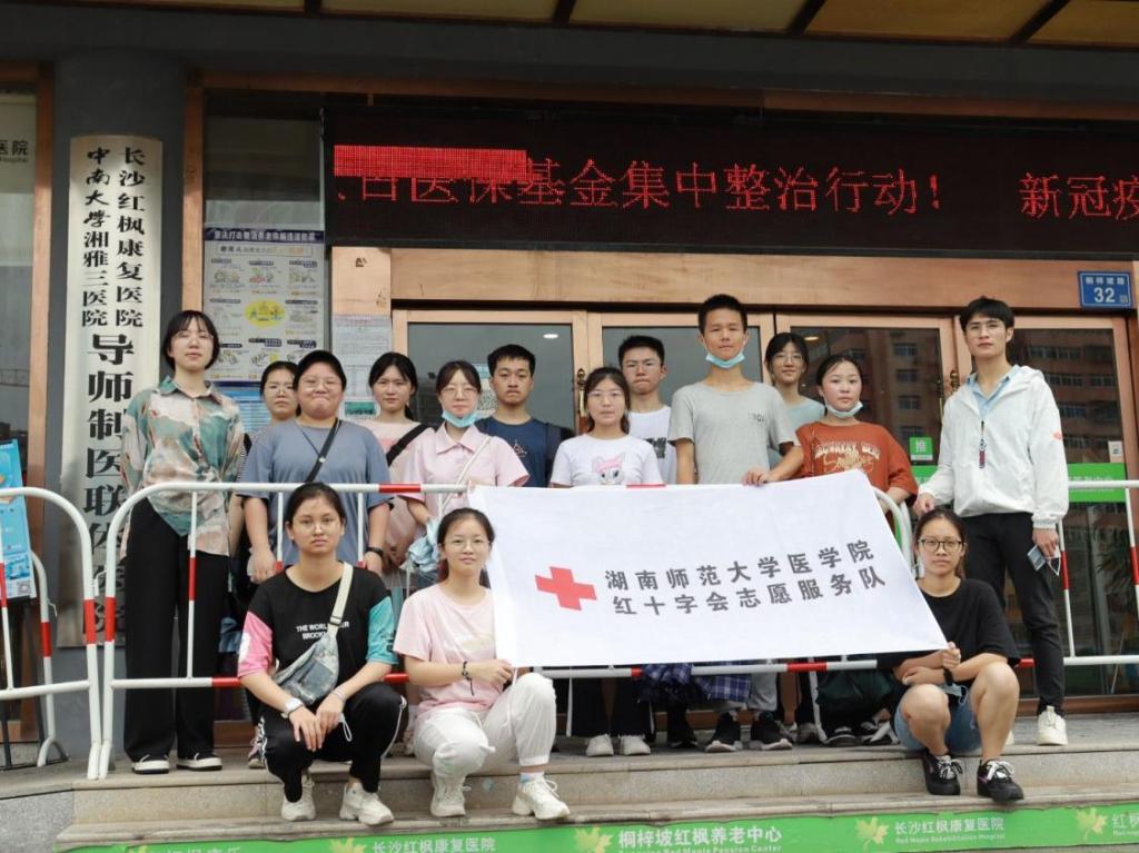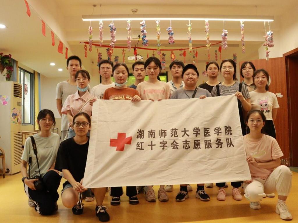7月4日上午,金沙官网红十字会赴长沙市暑假社会实践团前往红枫康复医院陪伴老人。我队16名成员参与到此次活动中。