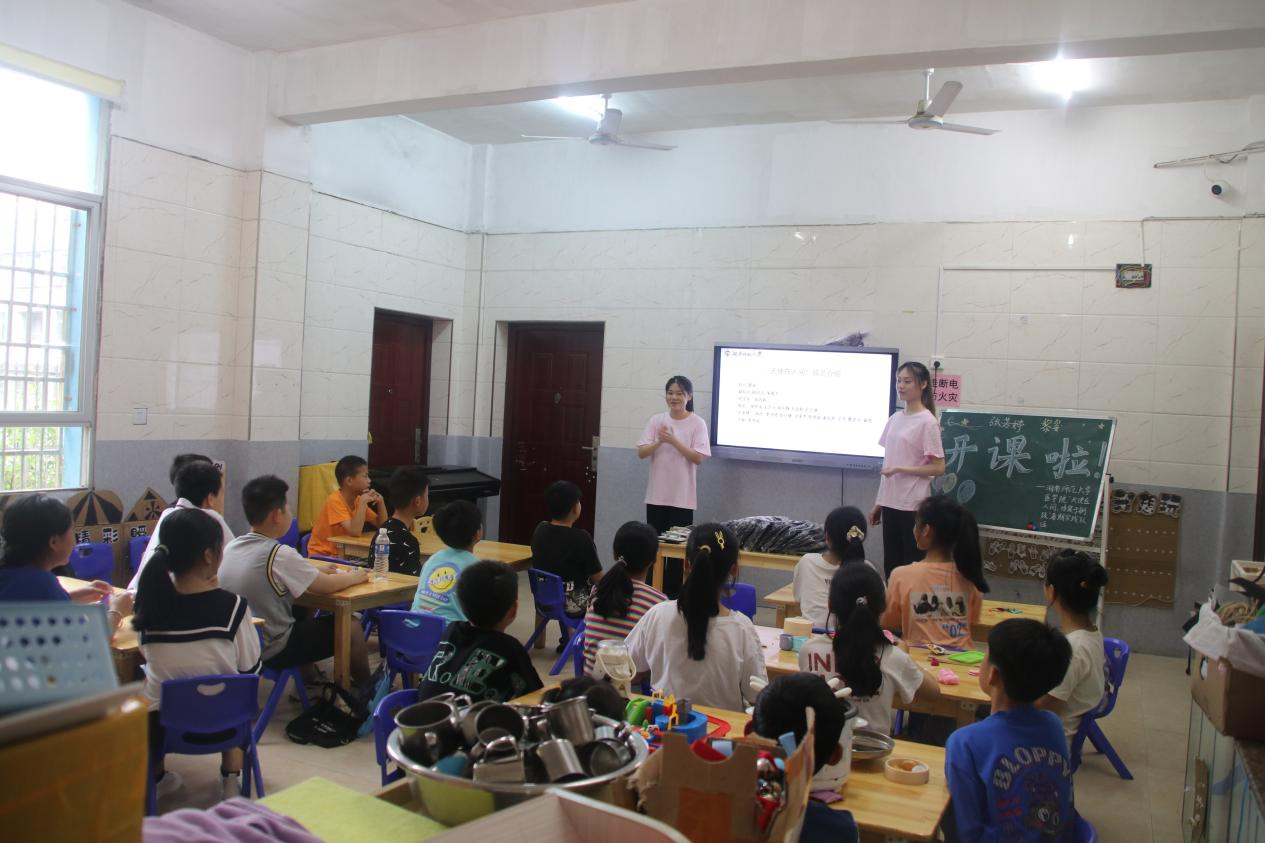 7月4日上午,金沙官网“天使在人间”暑期社会实践团队于铜鼓大塅镇中心幼儿园召开2022年夏令营开学典礼。21名同学在家长的带领下陆续到达幼儿园,在队员们的合理组织安排下,同学们有序地完成了新生报道和资料填写。全体队员参与此次活动。