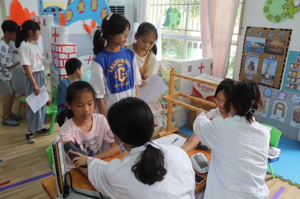7月9日下午,为了促进大塅镇学生健康成长,及时准确掌握学生体质发展动态,金沙官网“天使在人间”暑期社会实践团队于大塅镇中心幼儿园为大塅镇夏令营全体学生组织进行健康体检活动。