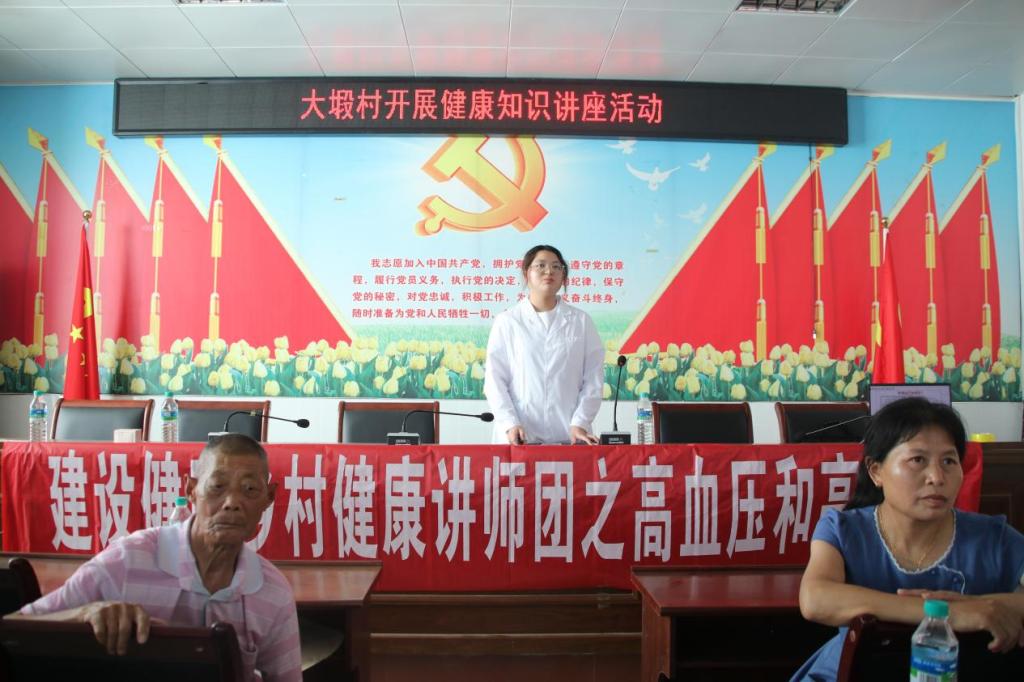 7月12日,金沙官网“天使在人间”暑期社会实践队的健康讲师团于江西省宜春市铜鼓县大塅镇大塅居委会举行健康宣讲活动。此次宣讲以普及高血压、高血糖的相关知识为目的,从名词概念、危害与症状、危险因素及预防、治疗建议四个方面展开讲述。健康专题组组长谢乐静及组员陈思瑜担任主讲人,团队部分成员和大塅镇部分村民参与此次活动。