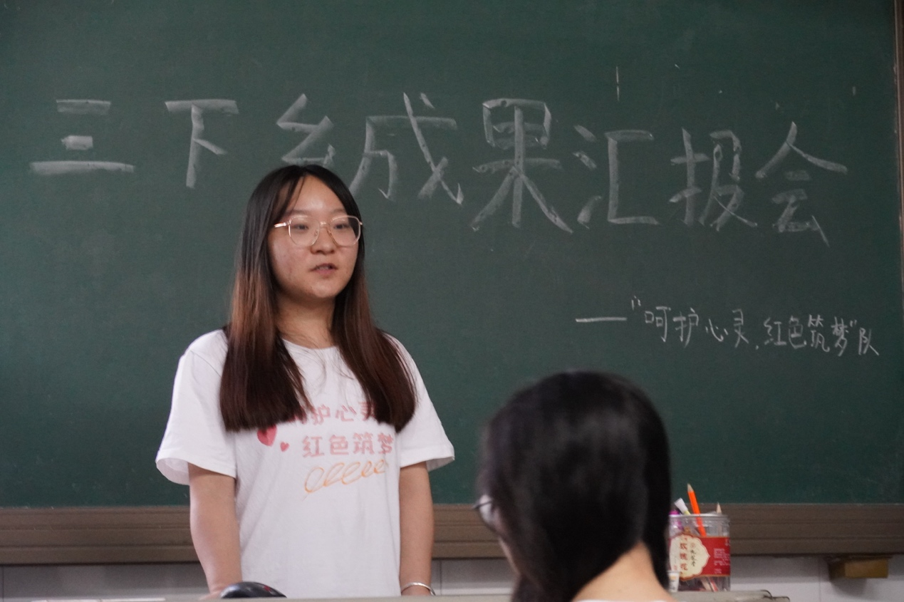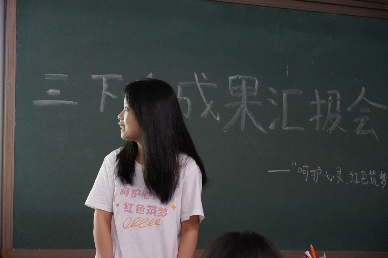 7月12日上午,金沙官网“呵护心灵,红色筑梦”赴炎陵队伍于鹿原镇第一中心小学教室开展三下乡成果汇报会,由队长唐静怡同学组织,全部队员到会。