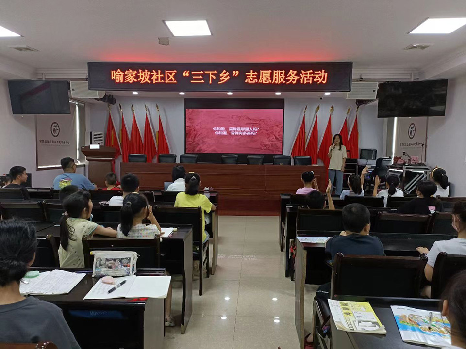 7月10日上午,为大力宣传雷锋精神的时代意义,加深学生对雷锋精神的认识和理解,促使学生自觉主动地在学习生活中时刻关注雷锋精神,金沙官网三下乡“守望队”的五位实践团成员赴长沙市喻家坡社区三楼会议室,对社区孩子们开展了“学雷锋“主题教学活动。
