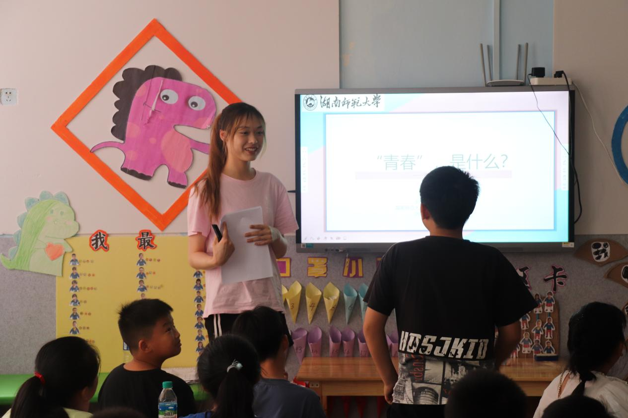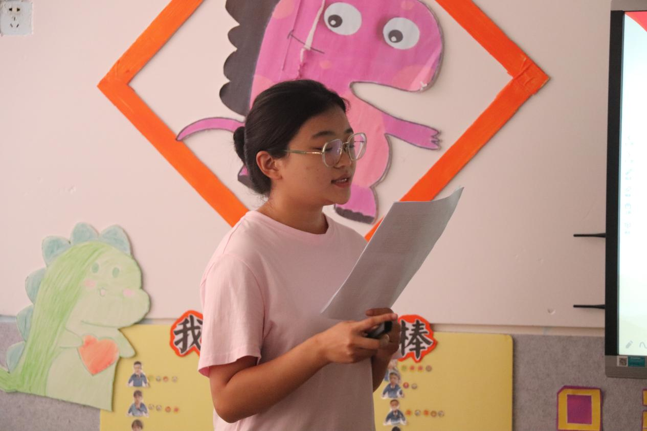 首先,张若婷从“青春”和“使命”的含义和联系出发,以五四运动和新冠疫情中中国青年们的责任担当为例,告诉孩子们要珍惜青春年少,肩负历史重任,推动实现中华民族伟大复兴。李冰倩以红军长征为立足点,鼓励孩子们学习长征精神,把自己的人生理想与祖国、时代和人类命运联系起来,勤奋学习,立志成才。随后,谢乐静通过两个趣味故事总结出学好普通话的重要性。她表示,学好普通话是推动信息发展,构建和谐社会,维护国家统一的重要工具。文圣杰带领大家简单地回顾2022年北京冬季奥运会,并指出其中的许多亮点。其中,他重点讲述了冬奥精神,呼吁同学们要从中汲取力量,学习中国健儿们不畏强手、敢打敢拼,勇于超越自我的精神。