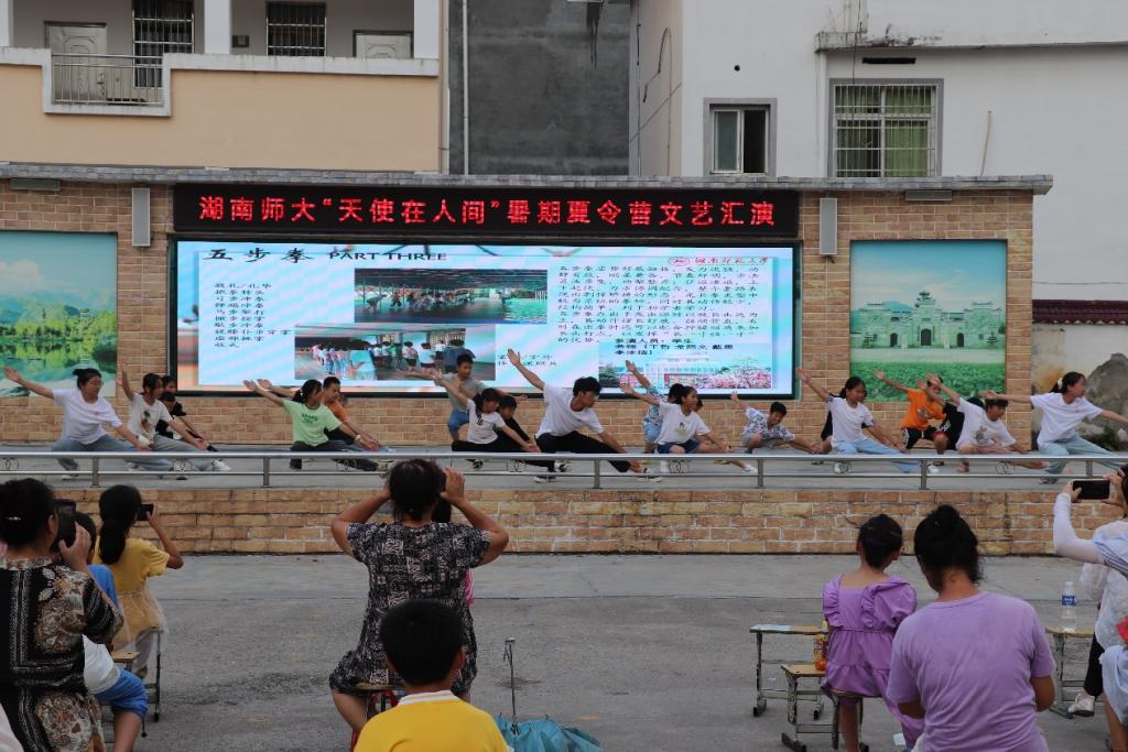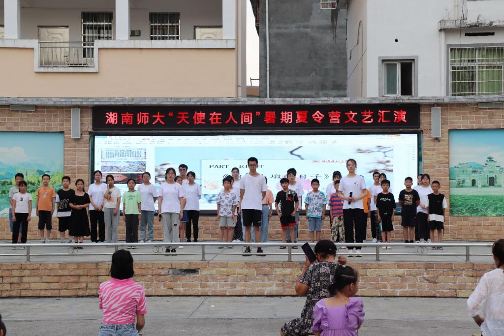 为展示“天使在人间”支教老师以及大塅镇学生的精神风貌,7月18日傍晚,金沙官网“天使在人间”暑期社会实践团队于大塅中心小学露天舞台策划组织举办暑期文艺汇演。当地政府领导及大塅镇中心小学学生、家长受邀前来观赏。夏令营全体同学和老师参与汇演。团队成员张若婷、朱鑫平担任活动主持人。