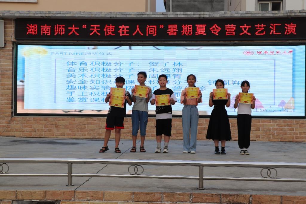 晚会后,团队进行js555888金沙老品牌“天使在人间”暑期夏令营优秀结营学生的表彰。