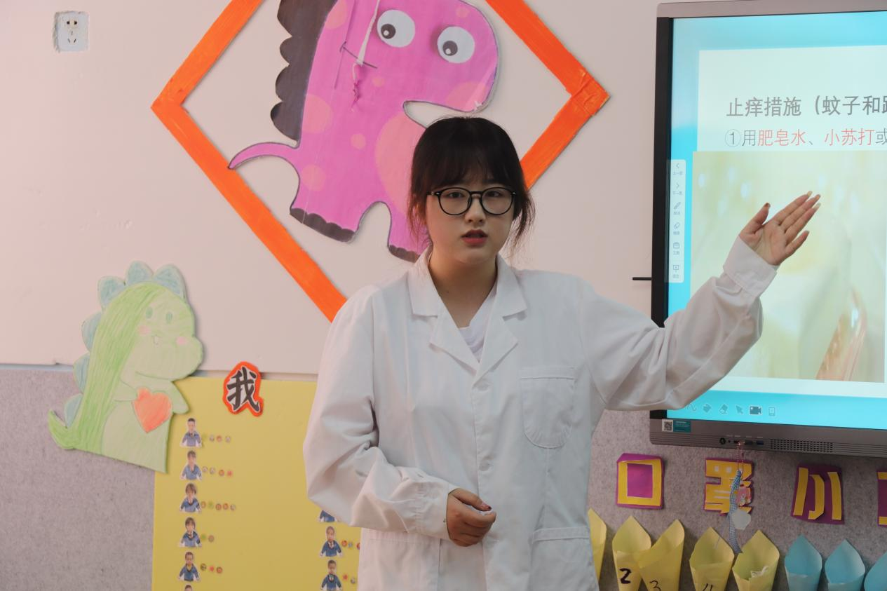 潘文清首先简单介绍了烧烫伤的定义和严重等级的划分原则,她结合生活实际,采用问答的形式,了解家长的日常处理方法并依其答案给予肯定或及时纠错。随后,她总结出“冲、脱、泡、盖、送”五字急救法,并依序分步骤讲解正确的处理方法。针对动物咬伤,潘文清通过展示PPT和播放相关视频分别普及了蚊虫、猫狗、蛇咬伤的急救方法。以蛇咬伤为例,可以通过咬伤伤口的齿痕形状和蛇体颜色的鲜艳程度辨别其有毒无毒,具体的急救方法为扎止血带和冲洗伤处,并密切观察患者的意识、呼吸和脉搏。最后,她总结道,无论发生任何紧急情况,都应依照规范方法正确处理并及时就医,切勿拖延或凭自身经验盲目自诊。