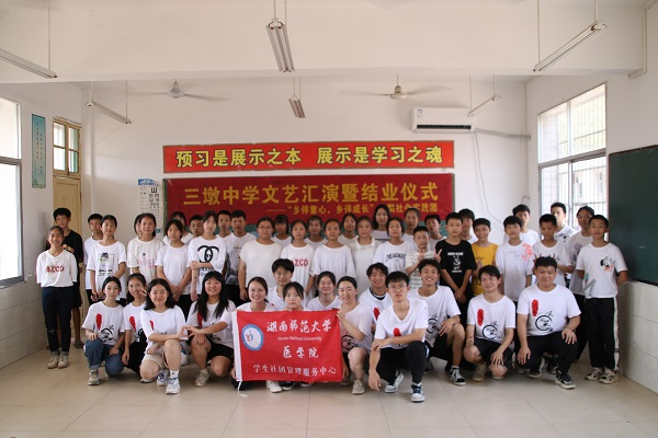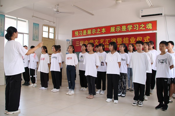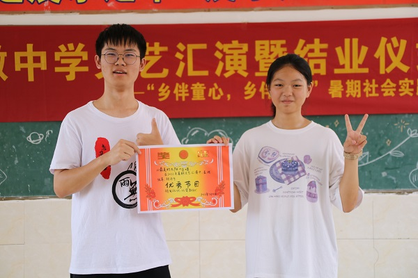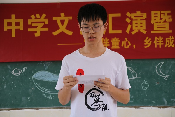 7月25日上午,金沙官网“乡伴童心,乡伴成长”暑期赴平江队伍于三墩中学进行文艺汇演暨结业仪式。此次活动由苏玉燕、李颖两位同学主持,全体队员、同学及受邀家长参与。