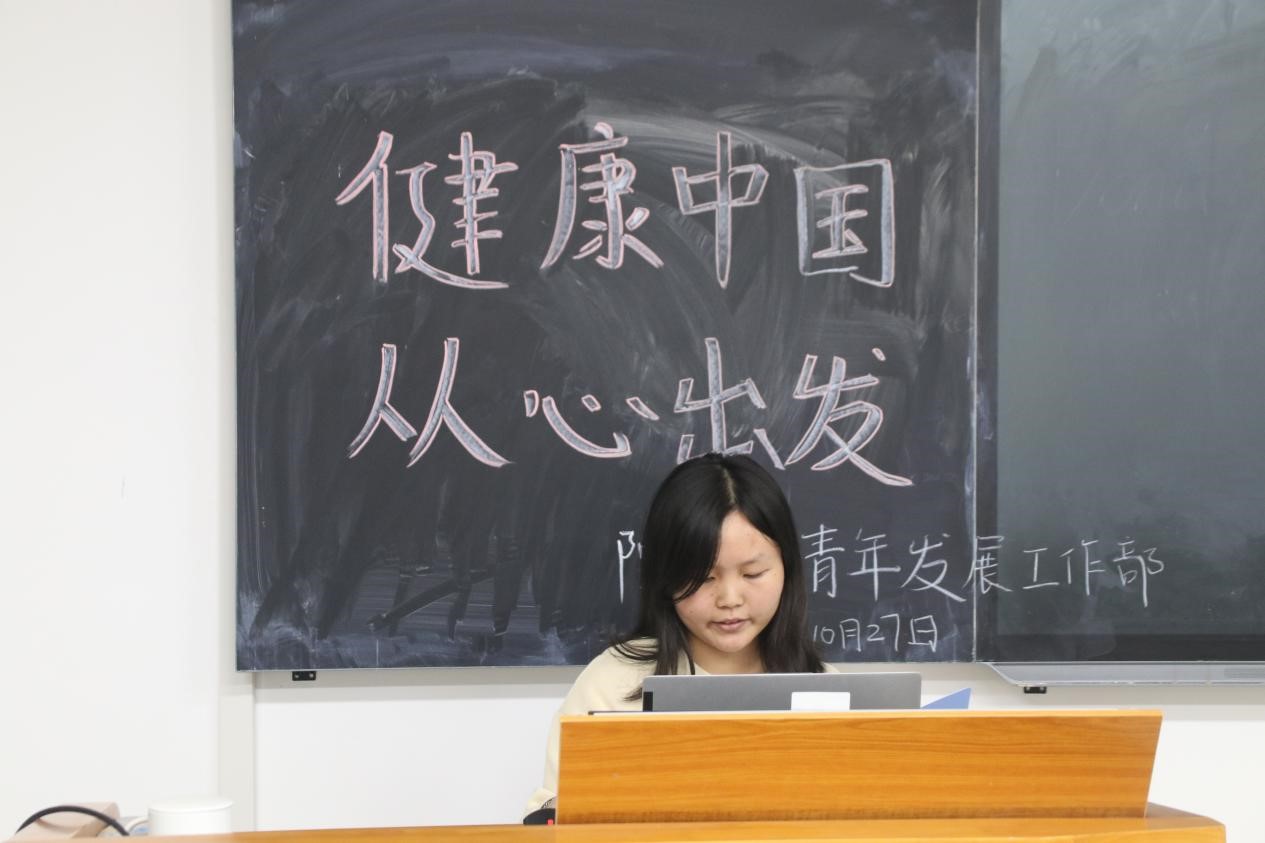 活动伊始,陈兰兰以时代为背景,将健康中国建设作为切入点,引出中医药文化学习的重要性。随后,金红利用中医学从动、静两方面向同学们传授保持心脏健康的方法,为大家强调了心脏之于健康的关键。不仅如此,她还以同学们的校园活动为例,加深大家对运动健康的理解。最后,她祝愿每一位同学都能保持健康的身体,并且鼓励大家不断提高自我能力,为推进健康中国建设贡献自己的力量。