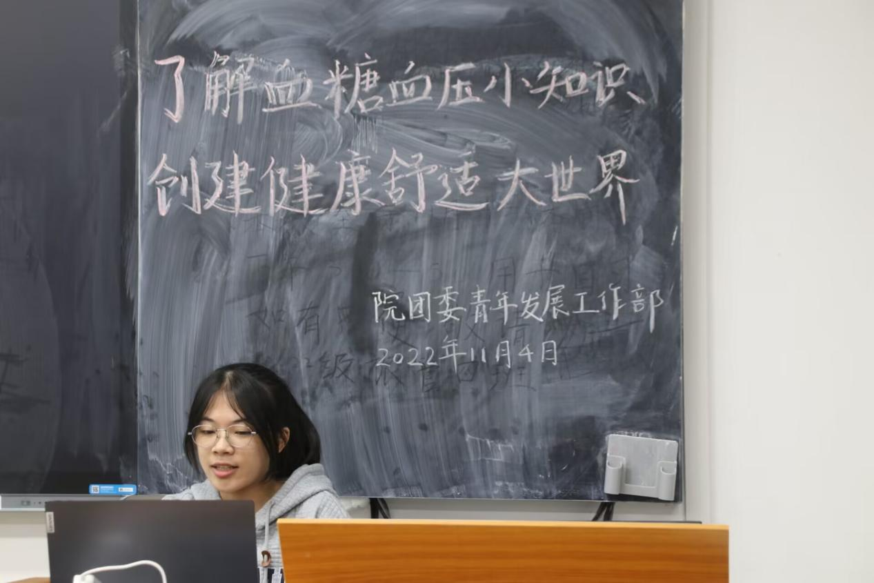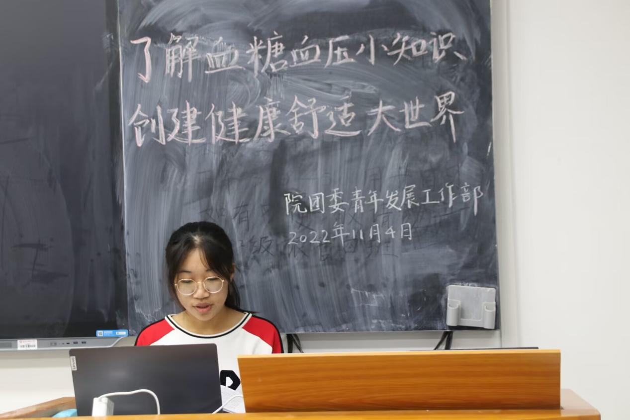 11月4日晚,金沙官网青年发展工作部于线上开展2022级第一期野平团校技能班第二次主题团课,团课的主题是“了解血糖血压小知识,创建健康舒适大世界”。此次活动由21级吴诗瑜、宋思熠、张嘉予担任主讲人,由22级青年工作发展部刘妍主持。
