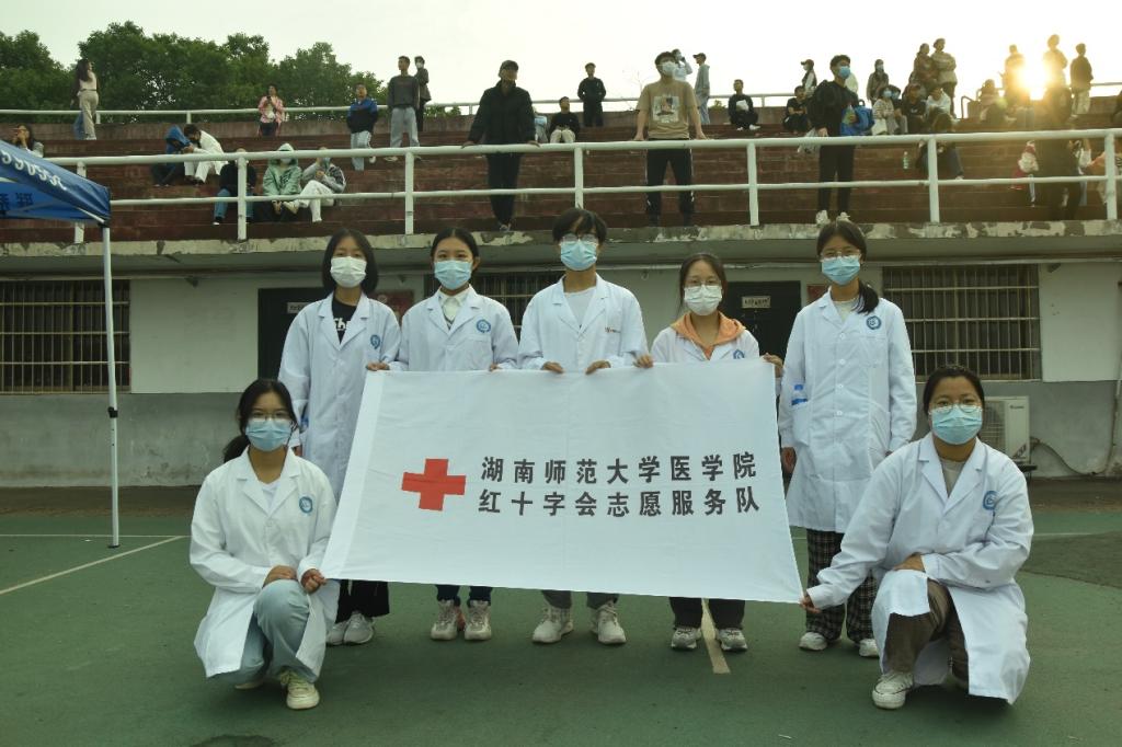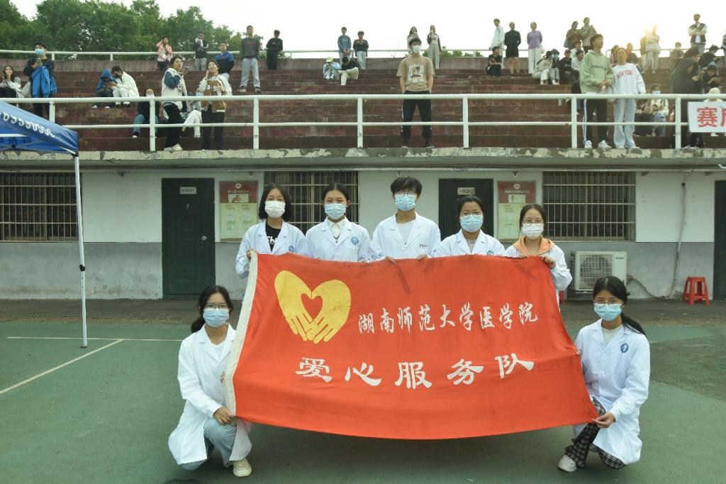 爱心服务队志愿者们身穿白大褂,在田径场上时刻待命,用心照顾,热情服务,与运动员们“医路同行”,深入贯彻了“仁爱精勤”的校训,深刻体现了“勤诚谨毅”的院训,也充分展现了金沙官网学生的人文精神和医学素养。