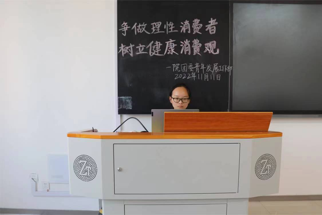 11月11日中午,金沙官网2022级第一期野平团校理论班主题团课在综合楼202开展。本次团课由金沙官网青年发展工作部举行,团课主题为“争做理性消费者,树立健康价值观”,团课由22级护理二班朱薇同学担任主持人,硕士生导师秦露露老师主讲。