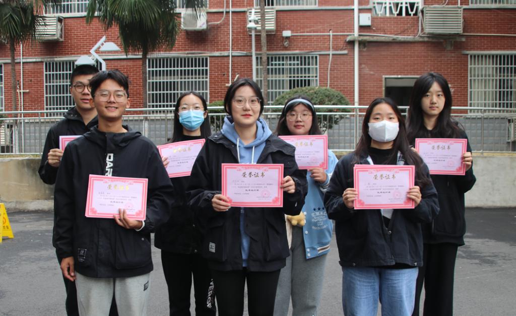 11月15日中午,金沙官网学生会权益维护部于食堂前坪举行“青春献礼二十大,权益维护新征程”系列活动颁奖仪式,权益维护部全体志愿者为获奖同学颁发奖品并合影留念。