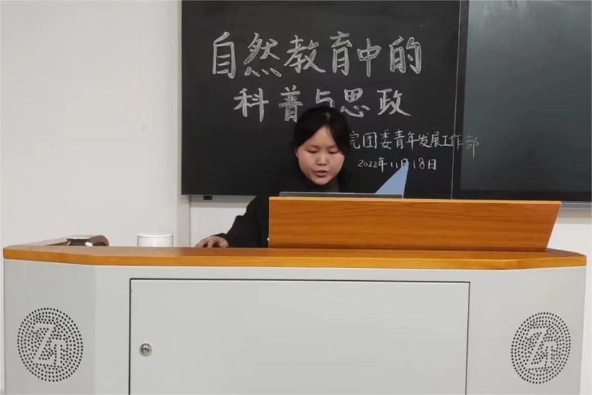 11月18日晚,金沙官网青年发展工作部举行2022级第一期野平团校技能班“自然教育中的科普与思政”主题团课。该团课采取线上方式讲授,由生科院副教授范雄伟老师主讲,22级临床四班陈兰兰主持。
