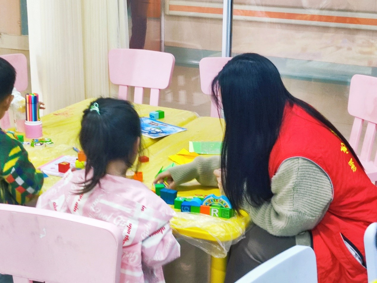 活动当天,志愿者们组织集合,按时出发,以保证活动正常进行。医院内,患病孩子们跟着志愿者们一起学习折纸手工,搭建积木,增强动手能力。随后,志愿者们带着儿童们画画看书,丰富了孩子的娱乐项目。此次活动持续了两个小时,志愿者们时时刻刻陪在孩子们身边,给予孩子们关怀与温暖。