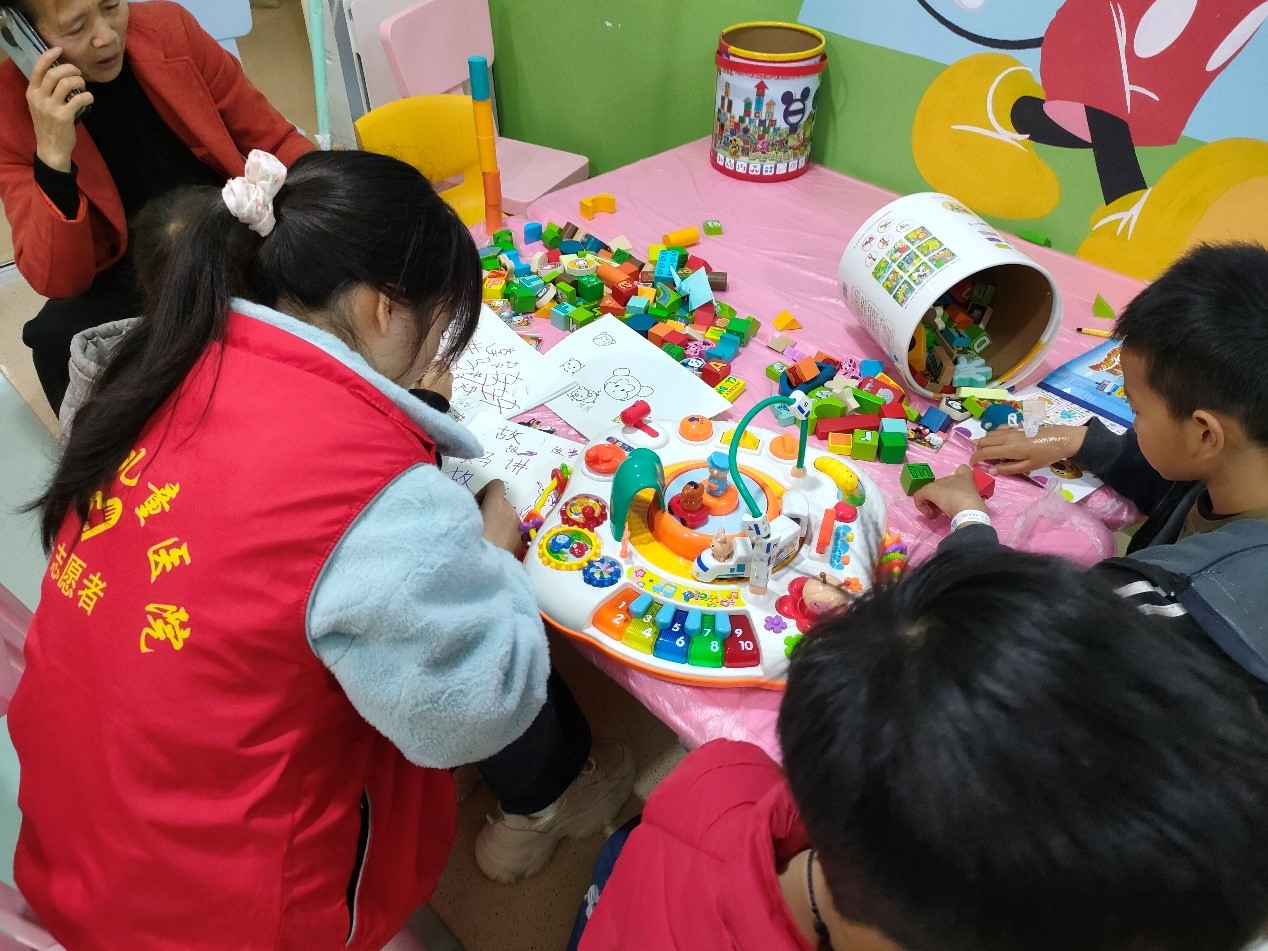 金沙官网青年志愿者工作部在院内提前招募10余名志愿者构成服务小组,并依据个人特点和意愿进行分组培训。志愿服务时,一组志愿者负责看管并维护迪士尼小屋内物品。另一组则负责邀请病房里的小朋友们前来迪士尼小屋,并带领小朋友们一同折纸、画画,与孩子们一起搭积木、玩拼图。用心陪伴,共同成长。志愿者们在与孩子们相处的过程中敞开心扉、真诚交流,彼此成为了好朋友,孩子们在志愿者的帮助下掌握了知识,获得了快乐,善良纯真的孩子们同时也治愈了志愿者的心灵。
