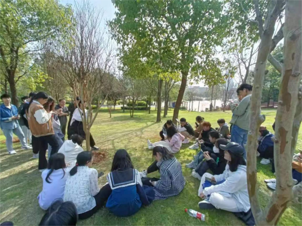 比赛结束后,同学们坐在草地上分享零食,分享趣事,阳光明媚,伴着和煦的春风,活动迎来了尾声。
