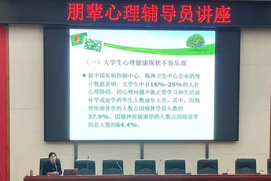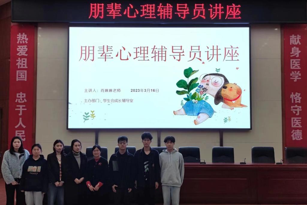 3月16日下午,金沙官网学生会在仁医楼报告厅举办了朋辈心理辅导员培训讲座,会议邀请专业心理老师肖琳琳现场指导,年级学生心理干部成员到场学习。