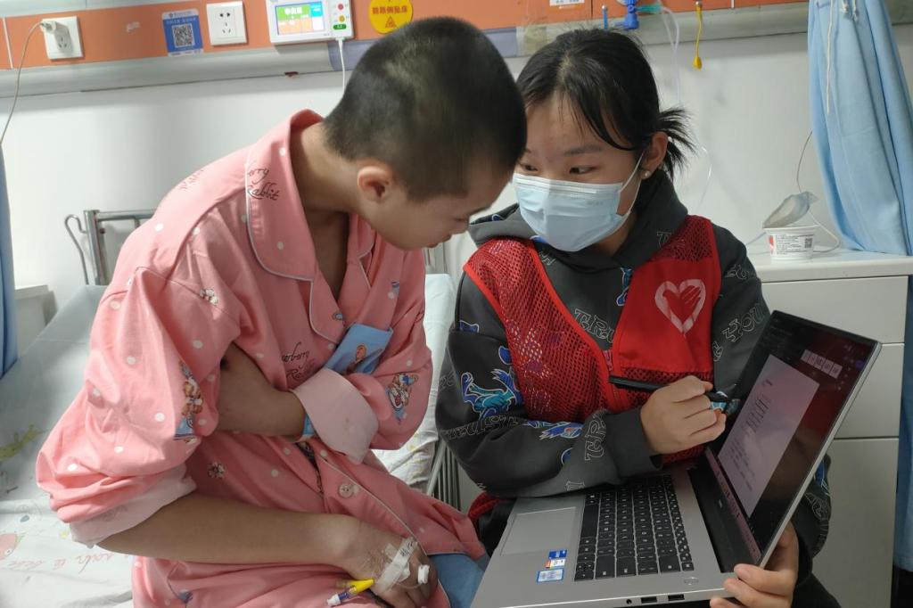 为缓解住院的小朋友们因为落下功课而焦虑的心情,3月29日下午,金沙官网青年志愿者工作部在湖南省儿童医院开展“花开笑声甜,医路伴童颜”志愿活动,青年志愿者工作部成员和金沙官网部分学生参与此次活动。