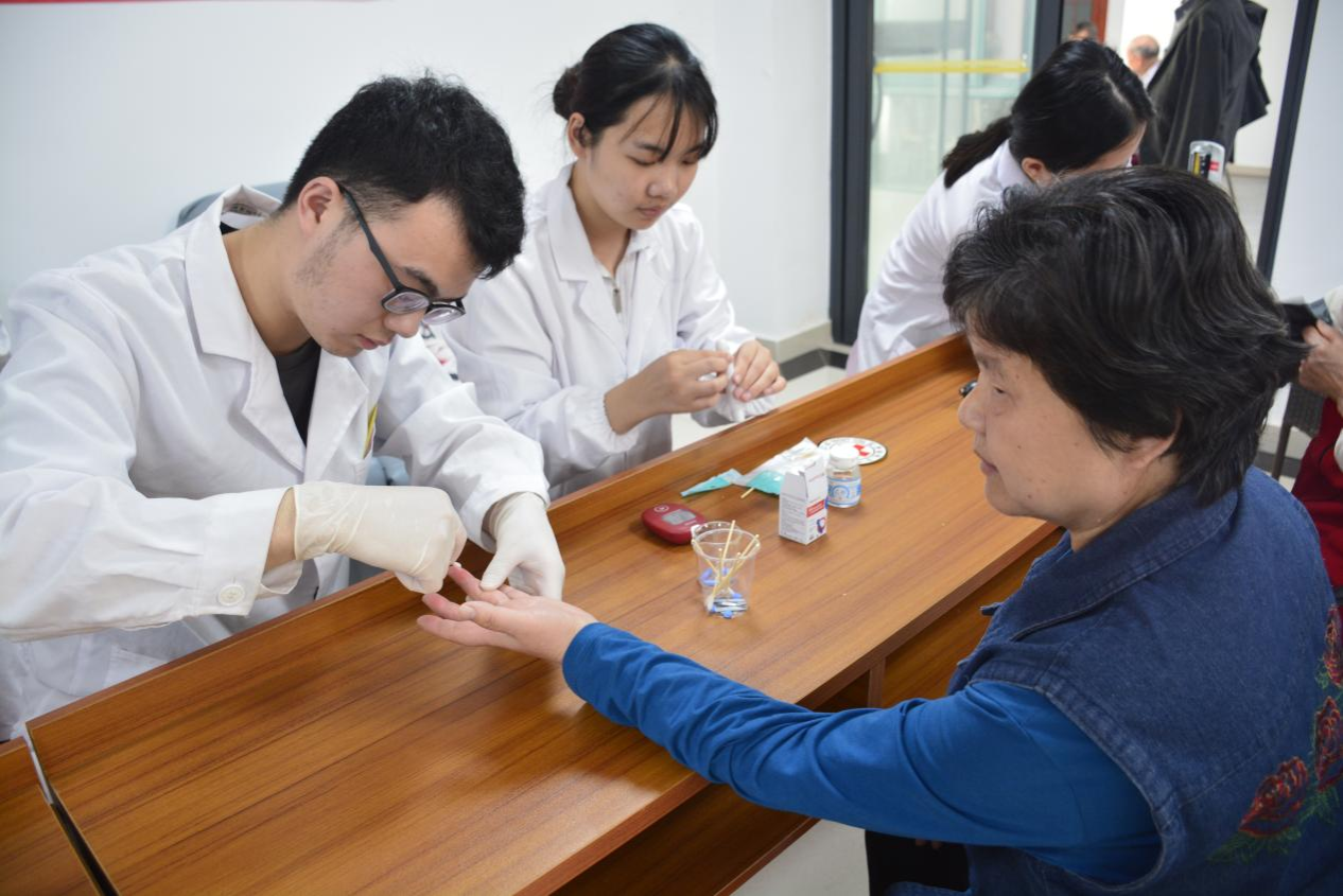 活动开展前,志愿者们进行培训,及时巩固知识技能,为活动的正常开展提供了有力的保障。活动当天,志愿者对所需药品进行检查与补充,并提前在活动场地布置好桌椅。下午两点半,健康咨询队成员开始对参与活动的老人进行义诊,测量其血型、血压和血糖值,并给他们普及健康知识,使其对自己的血压和血糖值有一个正确的认识。活动结束后,志愿者在老年服务中心合影留念。