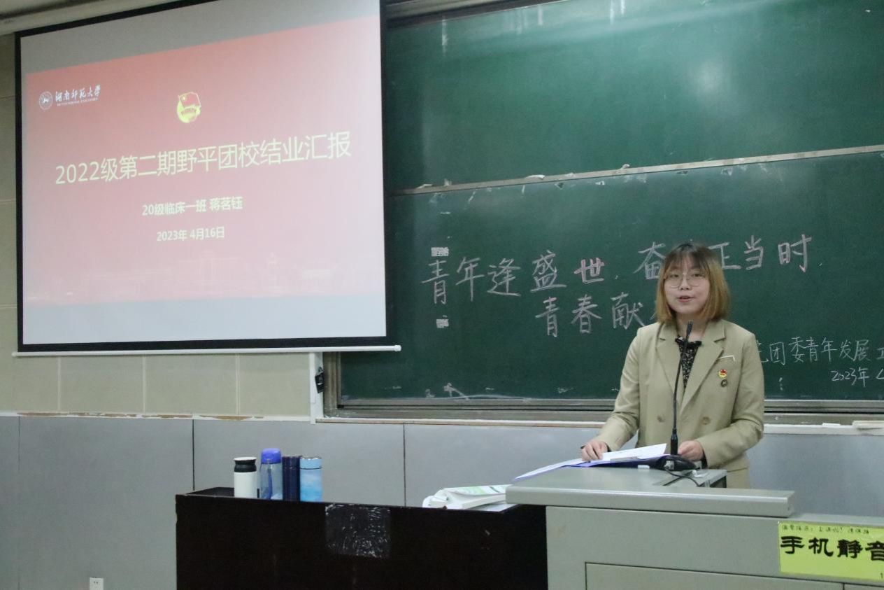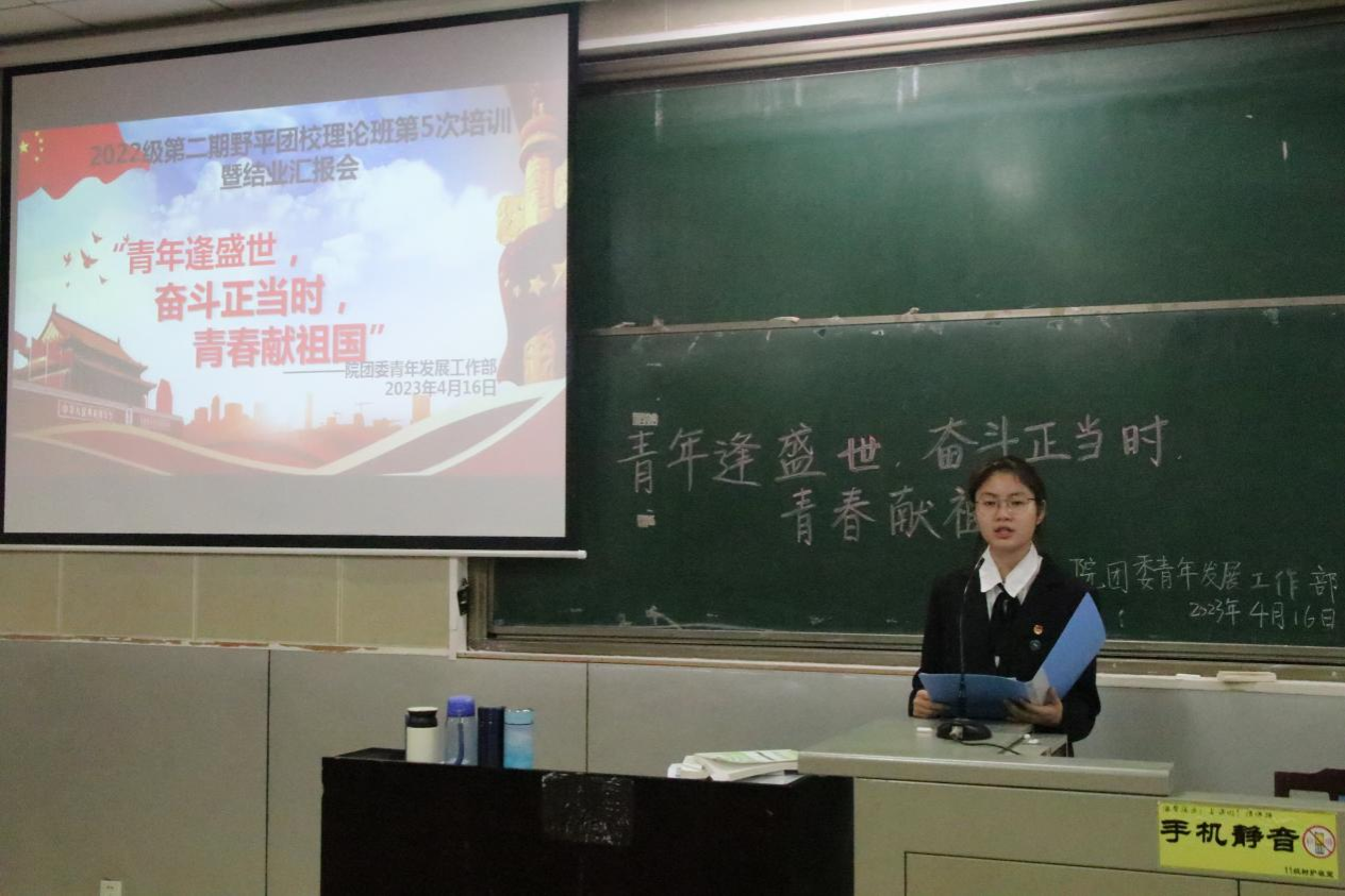 为引导青年学生自觉用奋斗书写青春的底色,4月16日晚,金沙官网团委青年发展工作部于仁医楼306教室开展了第二期野平团校主题暨结业汇报会。此次团课以“青年逢盛世,奋斗正当时,青春献祖国”为主题,院团委青年发展工作部成员和理论班全体学员参加了此次汇报会,会议由22级临床二班何湘湘主持。