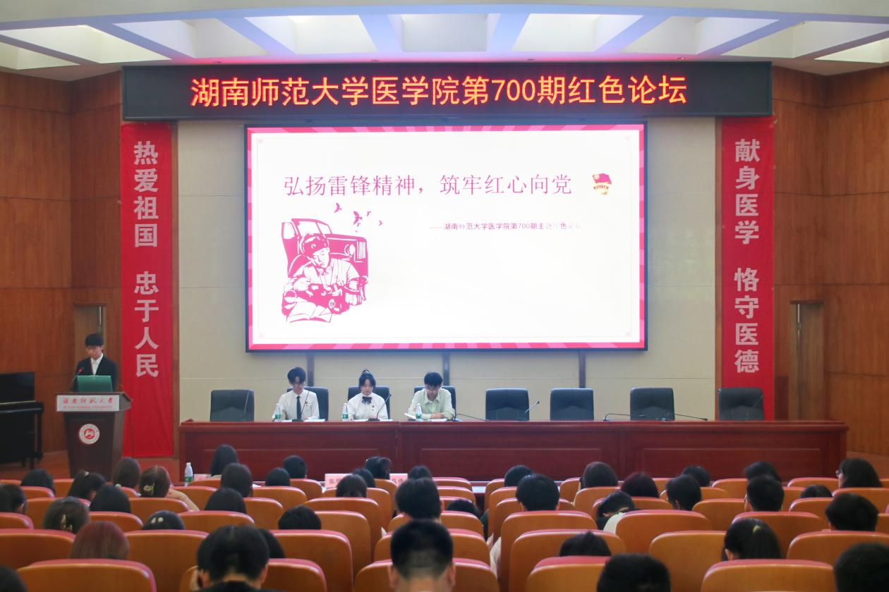 4月20日下午,金沙官网团委宣传部在仁医楼报告厅举行《弘扬雷锋精神,筑牢红心向党》红色论坛。金沙官网团委书记张明明老师、预防医学系阳益德副教授出席会议。20级树达护理班周露华、20级检验班尹美玲、20级预防班唐勇杰担任论坛主讲人。金沙官网部分同学参与此次活动。会议主持人为22级药学一班周志扬。