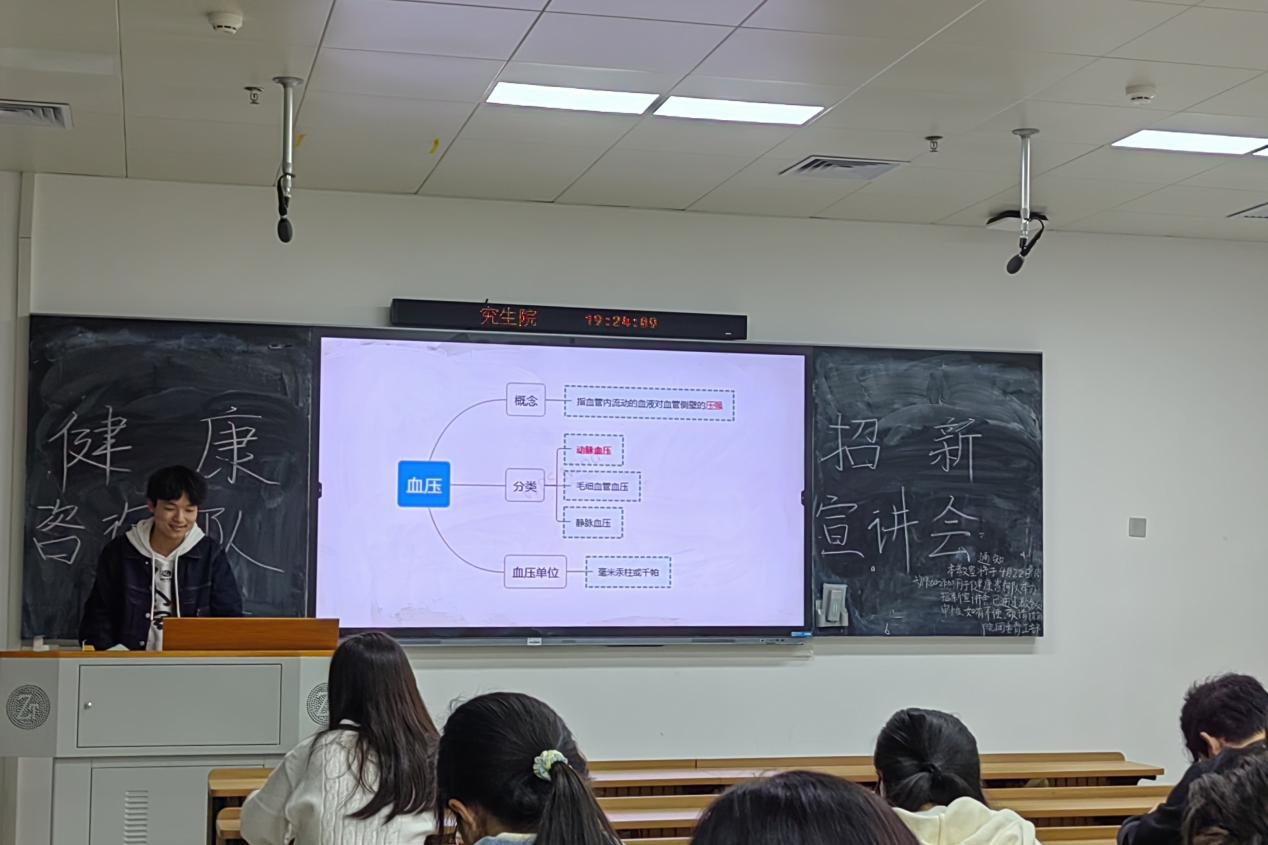 4月22日晚,金沙官网团委红十字会健康咨询队在综合楼203开展“一路有你,健康相随”招新宣讲会。健康咨询队负责人刘毅威、徐冰洁、陈垚、肖卓荟、袁野和部分同学参加了此次活动。