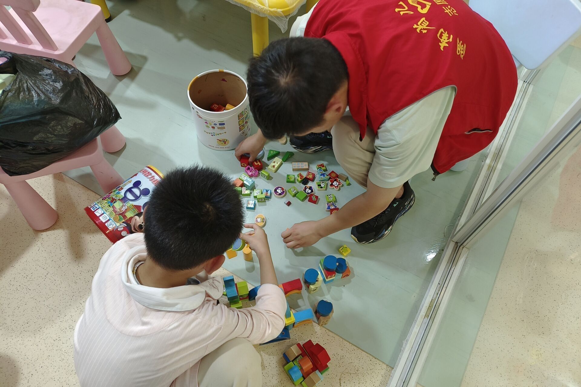 志愿者到达湖南省儿童医院迪士尼欢乐屋,领取志愿服,与医院活动负责人沟通好注意事项后,开始提供志愿服务。此次活动内容主要是陪伴儿童医院的小朋友们一起拼积木、拼图和折纸等。在与孩子们相处的过程中,两位志愿者分工明确,认真细心,和孩子们成为了好朋友。孩子们在志愿者的帮助下掌握了知识,获得了快乐,善良纯真的孩子们同时也温暖着志愿者的心。