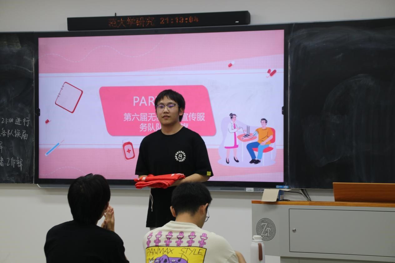 随后,院团委青年志愿者工作部执行负责人雷璇为队员颁发聘书,并由第六届无偿献血宣传服务队队长谢卓为第七届无偿献血宣传服务队队长马佳曼授旗。马佳曼介绍新一届无偿献血宣传服务队队员,并对新一年的活动和工作进行规划展望。雷璇表达了对新队员的期许以及对于无偿献血宣传服务队未来的展望 。