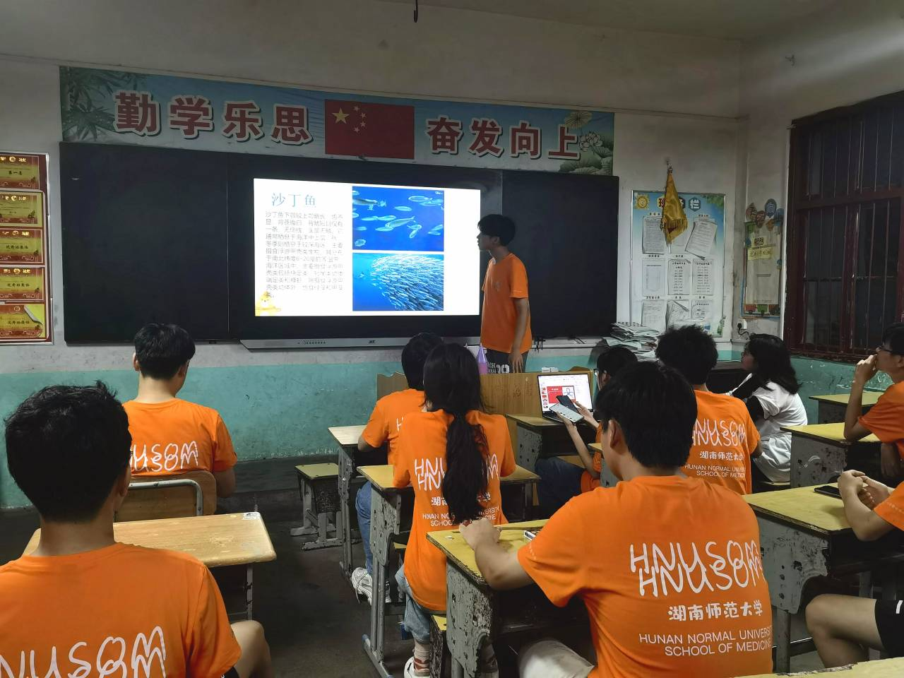 本次支教课表由支教组的队员们安排,包括街舞课、海洋生物科普课、趣味手工课、书法课、趣味体育课、课桌舞等常规课程,以及带有js555888金沙老品牌特色的趣味人体解剖课、生化小实验和太极拳。在试讲过程中,主讲人利用课件、视频和自身展示等形式进行讲课,评课成员们做了记录并就课堂效果、讲课流程、师生互动等方面提出了自己的建议,所有成员均参与了此次试教。