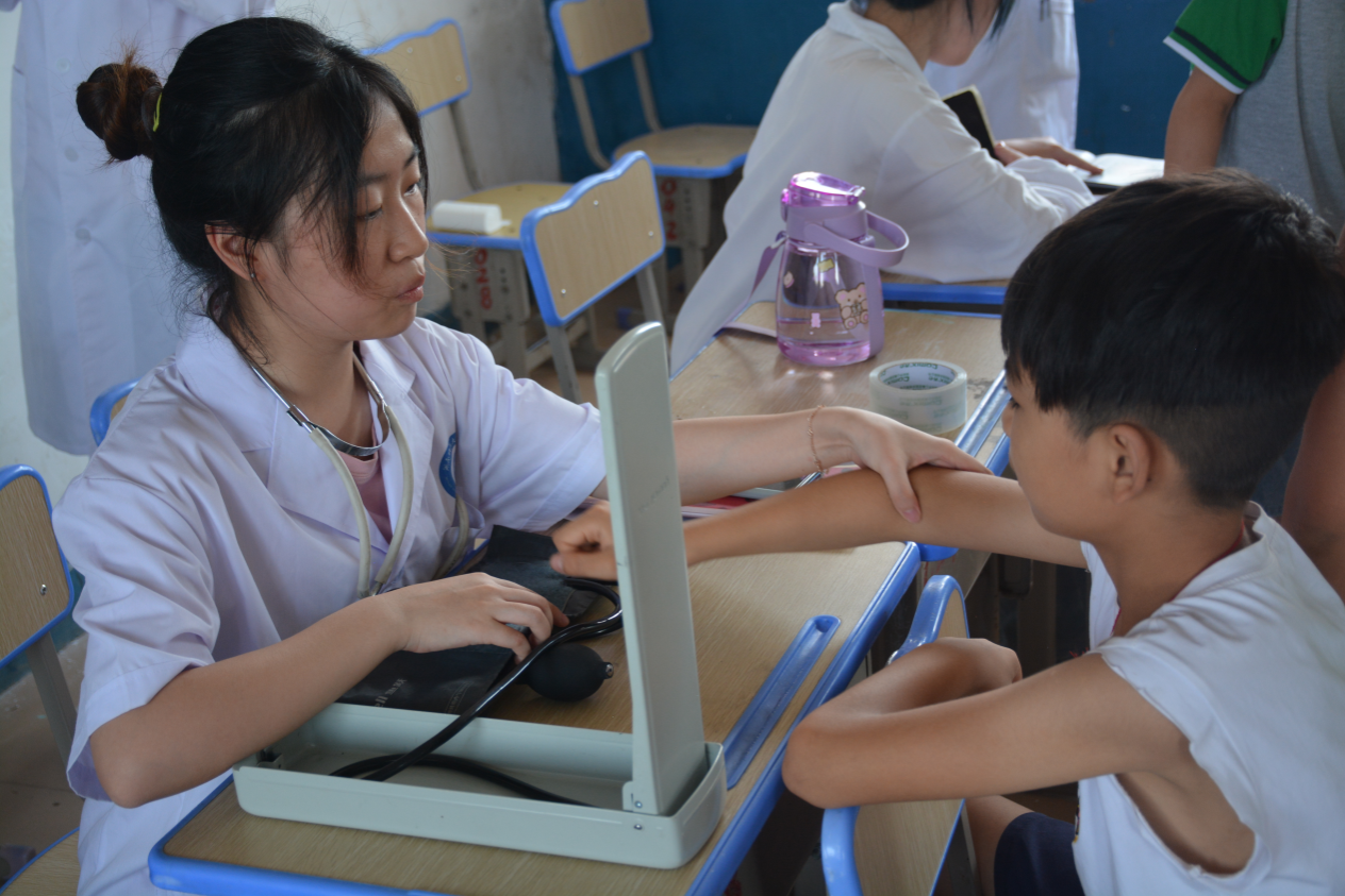 在爱心义诊中,金沙官网“天使在人间”暑期社会实践团成员无偿帮助檀江中学同学们进行血糖、血压、视力、色盲及身高体重的测量,并根据自身知识,提供了一些生活上的专业性意见。此外,还提供了爱心推拿等服务及相关教学,收获了同学们一致好评。
