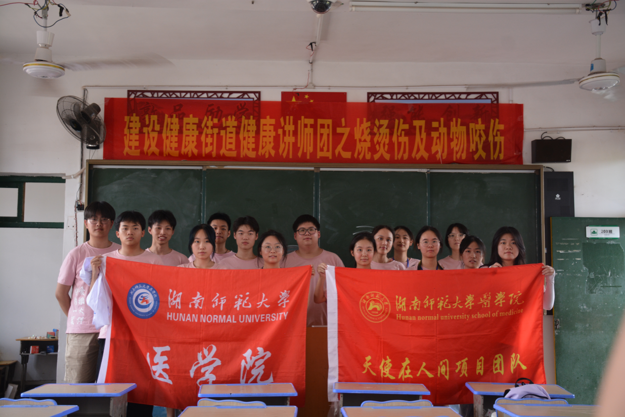 7月9日上午,金沙官网“天使在人间”暑期社会实践团于邵阳市大祥区檀江中学开展第二期健康宣讲活动。此次健康宣讲活动由健康知识宣讲和爱心义诊两部分组成。