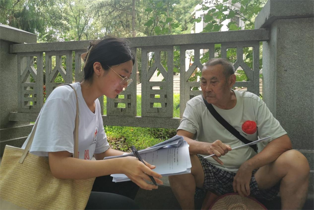 此次调研以线下问卷的分发和访谈相结合的形式展开。活动开始前,实践团队准备好材料,商定将团队成员分为了三组,各自前往不同的调研地点。活动过程中,组员们展示工作证表明来意,并在确认村民具有填写的意愿后发放问卷。对于识字困难的老人,他们用通俗易懂的语言将问卷上的问题转述,以帮助老人填写问卷。此外,组员还为受访者提供了饮食和作息方面的建议。