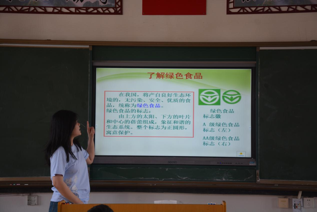 黎姿将此次课程分为中国少年儿童饮食安全健康状况现状、垃圾食品的危害、少年儿童应该吃什么、让食物中毒远离家庭等四个专题。黎姿利用幻灯片生动形象地介绍了各种食物的功效、相关食用注意事项及食物挑选的标准,并介绍了在食物中毒后我们应该采取的相关应对措施。此外黎姿还利用课堂知识,对同学们进行提问,同学们踊跃举手回答问题,下课后同学们还积极地向黎姿学习相关方面的健康知识。