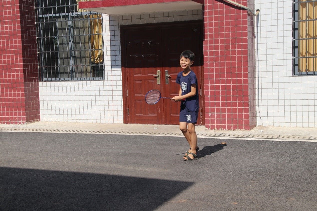 三位实践团成员先带领同学们进行跑步热身活动,放松身体的同时激活肌肉。接着小朋友根据自己的意愿分成两组,税杰和郭林海对一组小朋友进行羽毛球握拍、发球、接球等培训,另一组由黄柯带领练习篮球运球和投篮。在课程最后两组成员共同举行了对抗比赛,获胜的小朋友获得了小礼品。